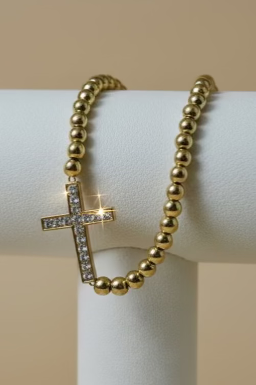 Keep your faith close and your style sparkling with our Faith & Sparkle Cross Bracelet. Designed with gold-dipped beads and a dazzling cubic zirconia cross charm, this stretchy bracelet is both meaningful and chic. Perfect for everyday wear, layering with other bracelets, or gifting to someone special, it’s a timeless boutique accessory that blends elegance with devotion.