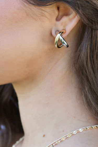 Sparkle and shine with our Golden Night Earring! This unique piece features a playful criss-cross design incorporating both gold and silver, creating a stunning and versatile accessory for any outfit. Make a statement with these dazzling earrings.