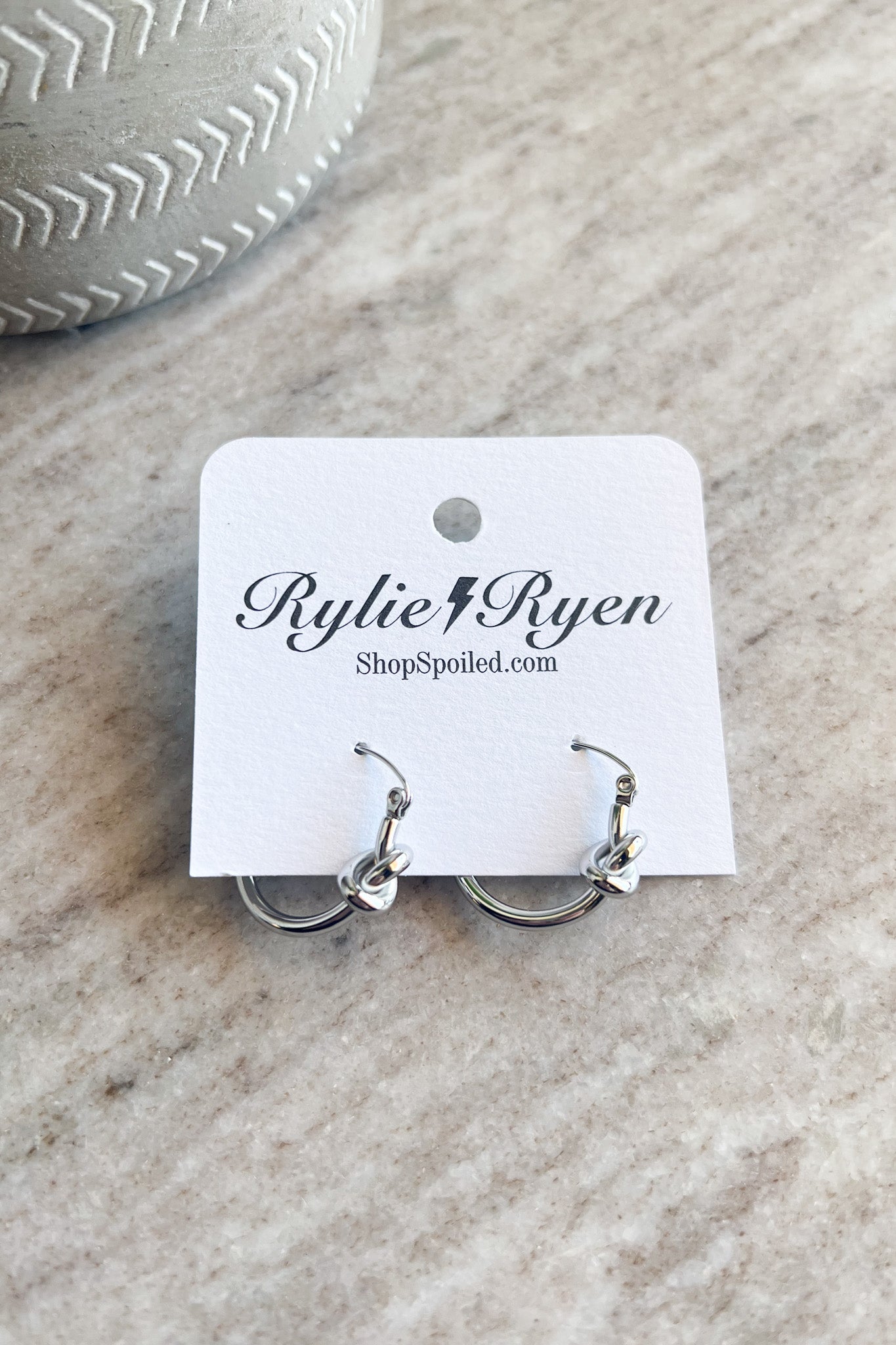small non-tarnishing stainless steel hoop earring with twisted knot detail.