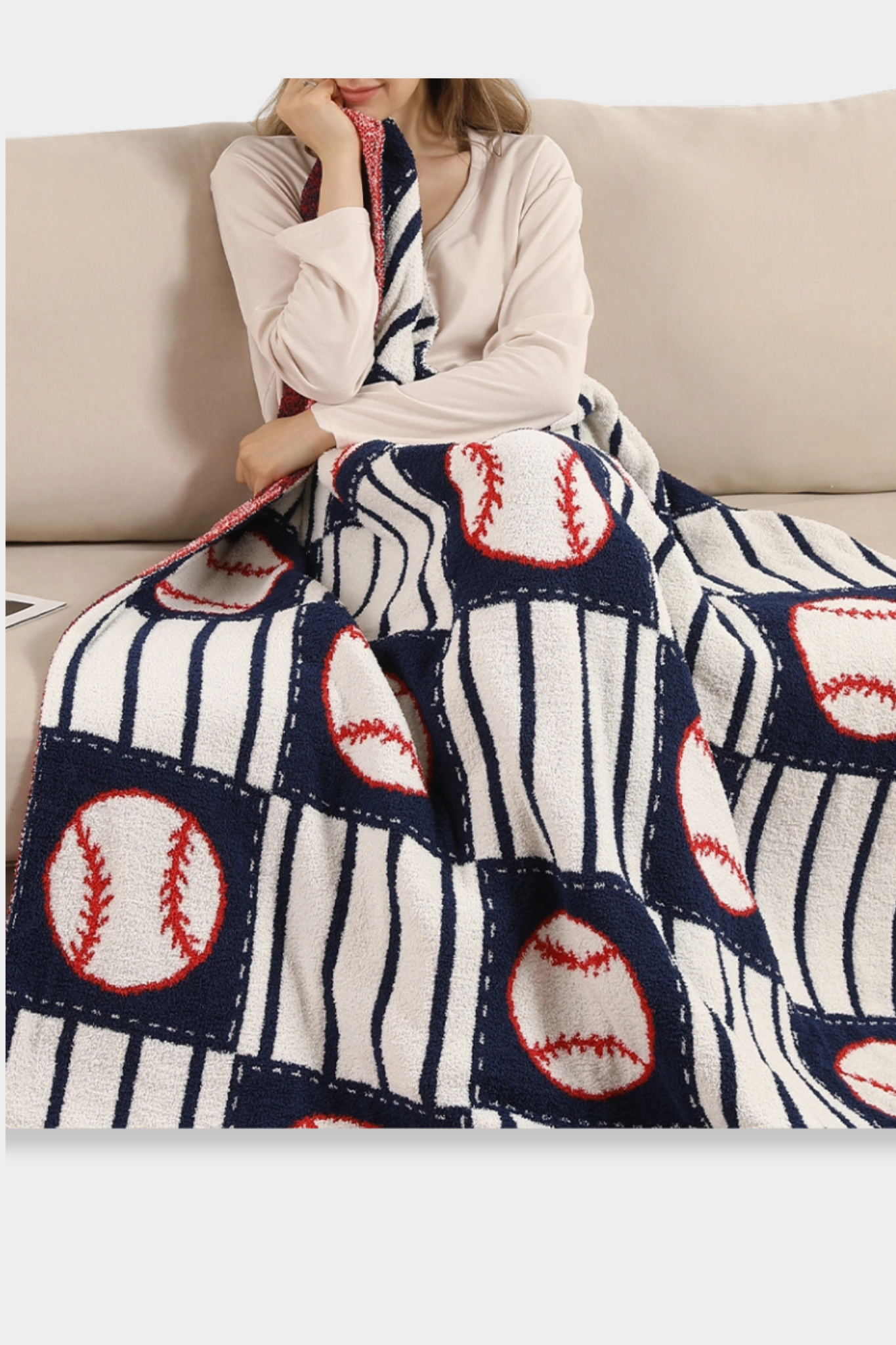 Baseball Pattern Print Cozy Throw Blanket - Baseballs Pattern Printed Design - Material: 100% Polyester Microfiber - Measurement: 50" L x 60" W - Care: Machine Wash - Cold, Do not Bleach, Lay Flat to Dry, Do Not Iron, Do Not Dry Clean Bring sporty flair and cozy warmth to your home with this baseball-themed throw blanket. Designed with a fun and nostalgic mix of baseball motifs and pinstripe patterns, it features classic red stitching details on white baseballs set against a navy-and-white background. Made from ultra-soft, plush fabric, this blanket is perfect for curling up on the couch, cheering for your favorite team, or adding a playful accent to a kid’s room or man cave. The lightweight yet insulating design makes it ideal for year-round use. Whether you're a lifelong fan or simply love sporty style, this blanket is a perfect blend of comfort and character.