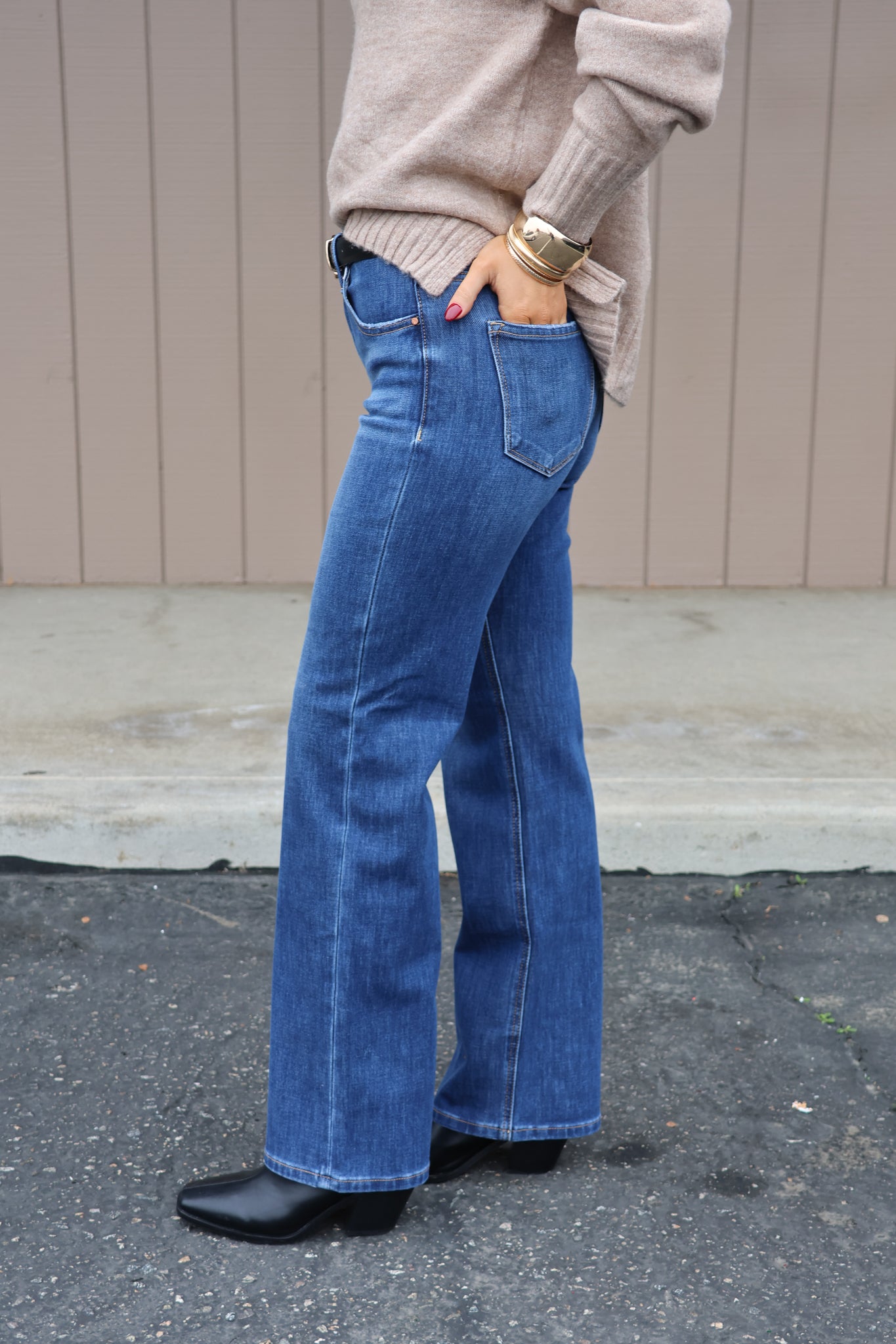 Introducing the Ellie Jeans—your new go-to for effortless style and confidence! These high-rise beauties feature built-in tummy control that smooths and flatters, so you can rock them all day without a second thought. The classic medium wash pairs perfectly with everything in your closet, from crop tops to oversized sweaters. Comfortable, chic, and totally you. Slip into the Ellies and feel the difference!