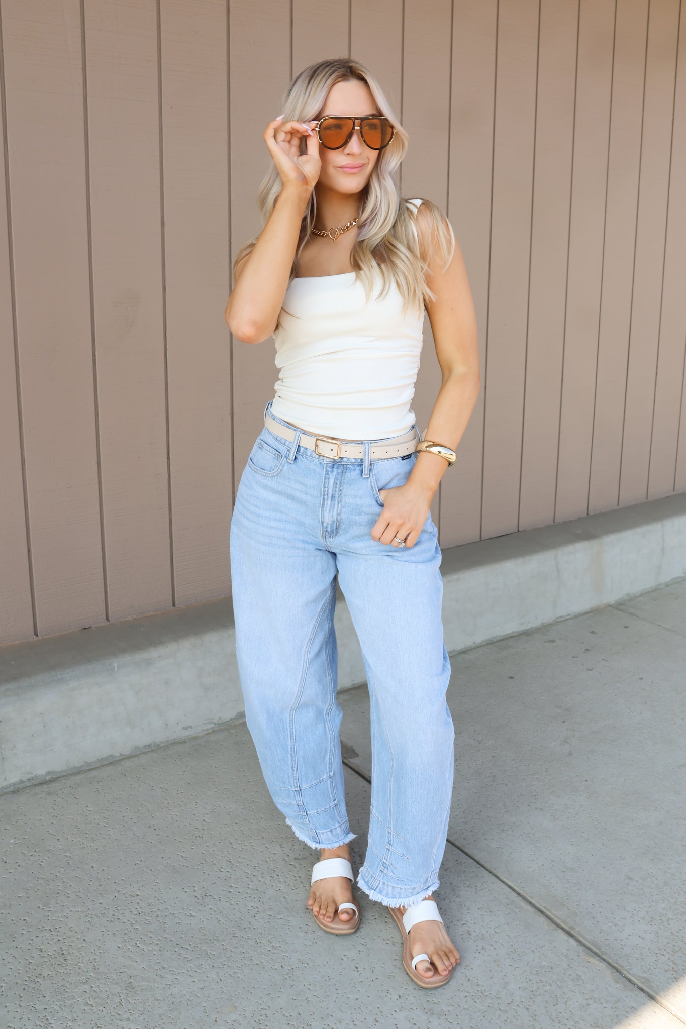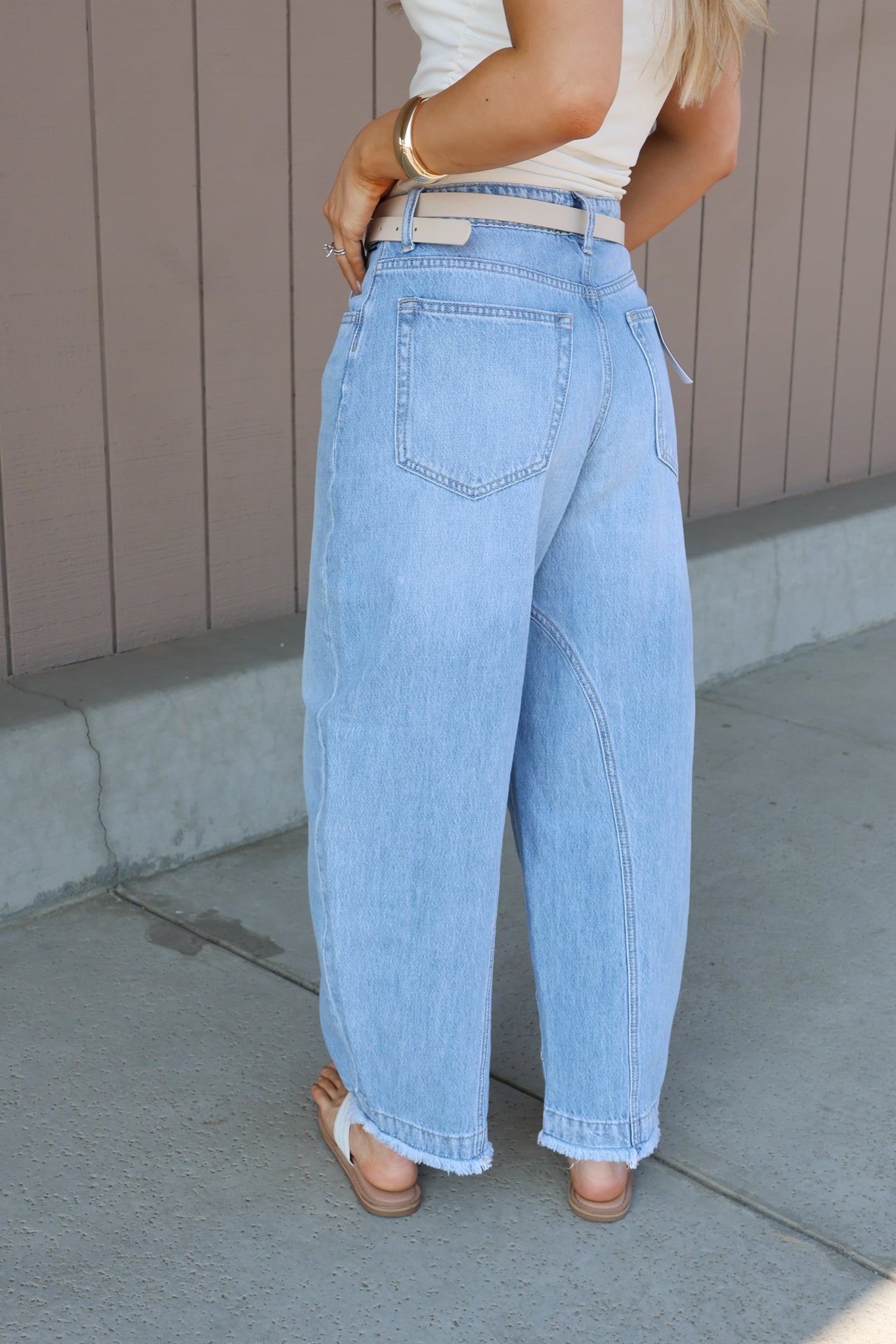 Mid-waisted barrel-leg denim jeans