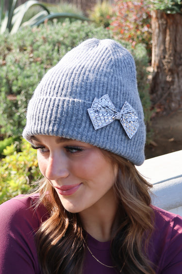 Slay winter fashion with the CC Glitter Bow Beanie! This ribbed beanie is not only cozy, but also adds a touch of glitter with its adorable bow. Get ready to shine and stay warm in this playful accessory.