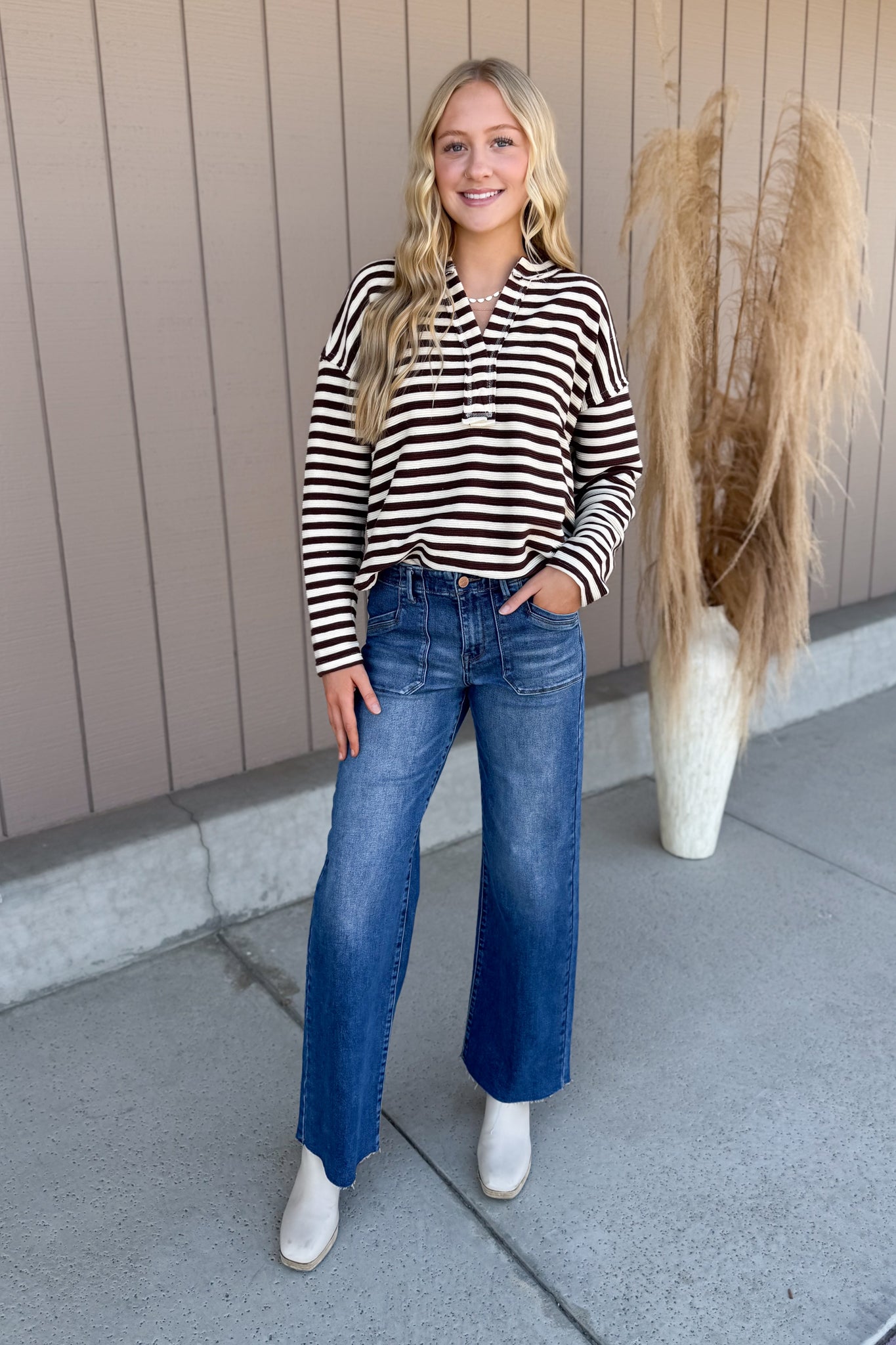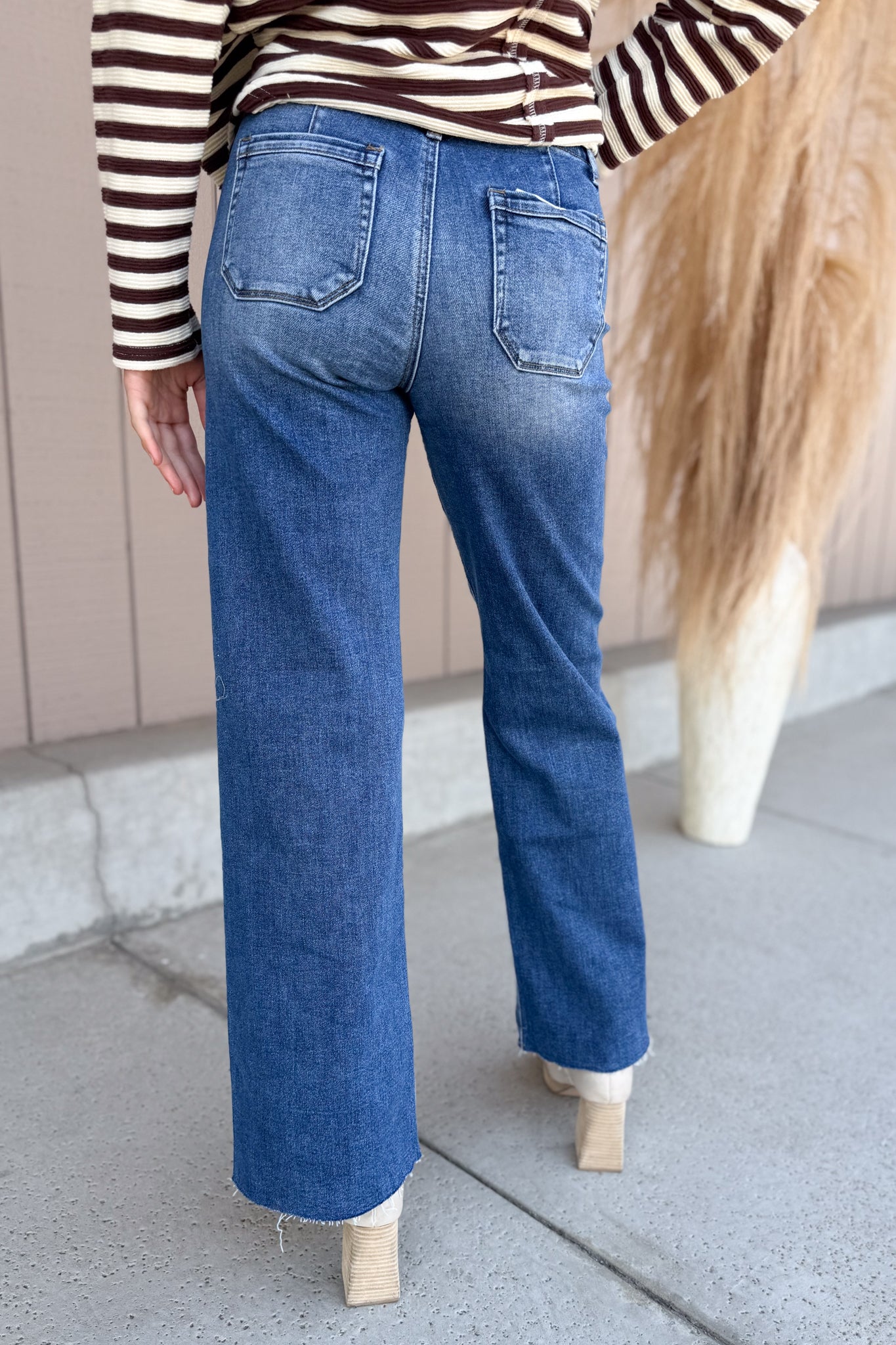 Slouchy Wide Leg Jeans with Front Patch Pocket Detail Meet your new denim obsession. These Stephanie Jeans feature a relaxed, slouchy silhouette with a flattering wide leg that works with everything from sneakers to heels. The standout front patch pocket detail adds a playful touch of personality—because who says functional has to be boring? Effortlessly cool and endlessly versatile, they're the pair you'll reach for again and again.