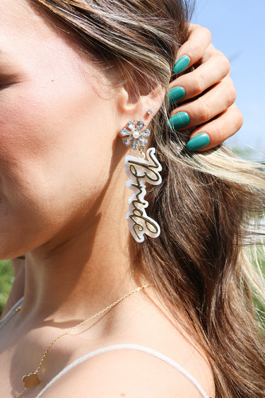 Get ready to make a statement on your special day with our That Bride Earrings! These playful dangle earrings feature a chic white border, perfect for any bride looking to add a touch of fun to her wedding look. Say "I do" to these earrings!