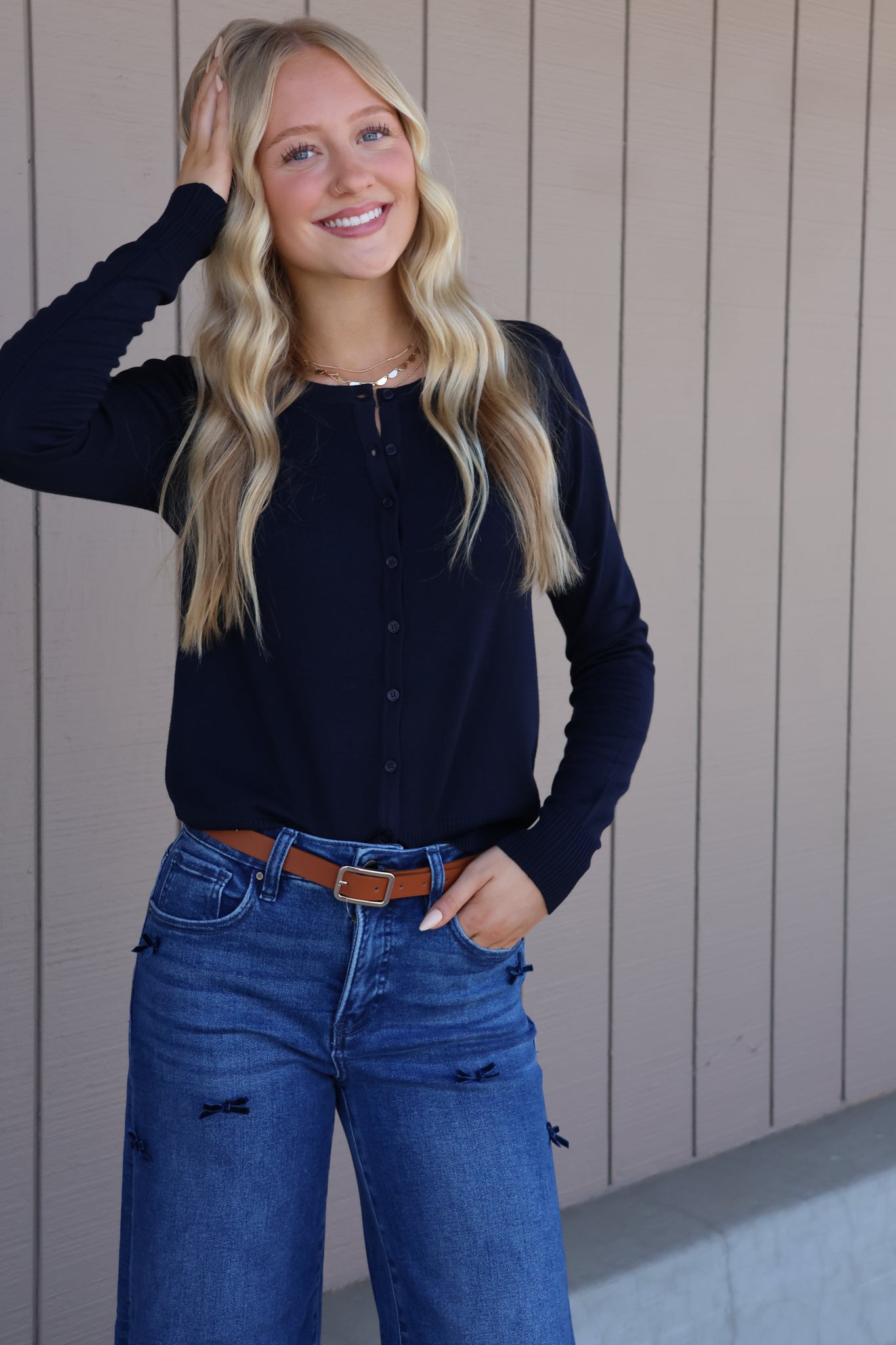 Every closet needs a timeless layering piece, and our Easy To Style Cardigan is just that. Featuring a slim, flattering fit with a full button front, soft knit fabric, and ribbed cuffs + hem, this cardigan is the ultimate versatile staple. Wear it buttoned up for a polished look or open over a cami for effortless layering.