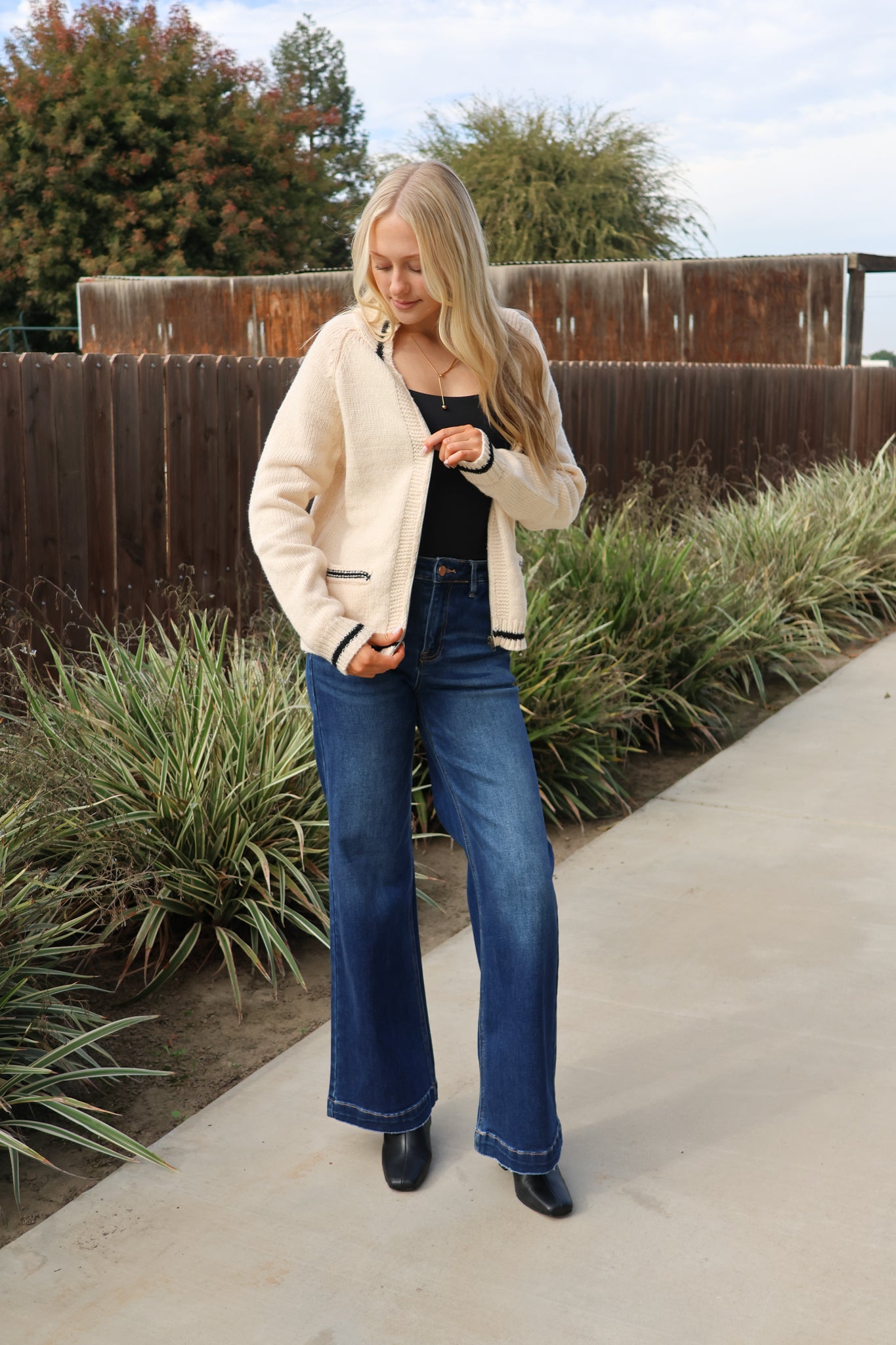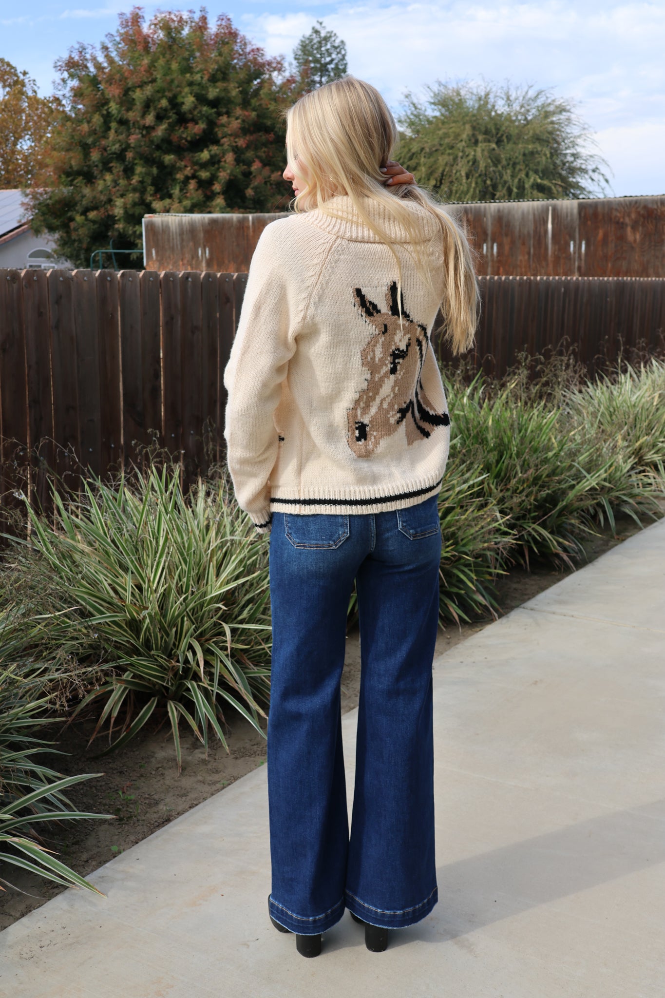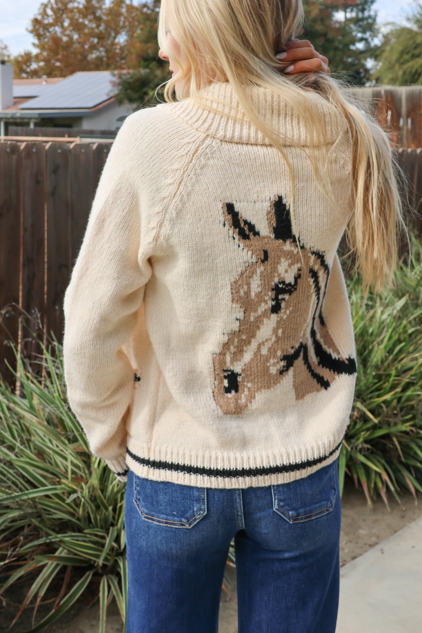 Channel cozy equestrian vibes this season in our Equestrian Dreams Sweater Jacket. Designed with a playful horse-inspired pattern, this zip-up cardigan is the perfect mix of cozy and chic. Its relaxed fit and warm knit make it ideal for layering over tanks, blouses, or turtlenecks. Available in cream or taupe, this boutique sweater jacket is a must-have for horse lovers and trendsetters alike.