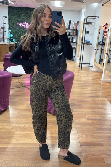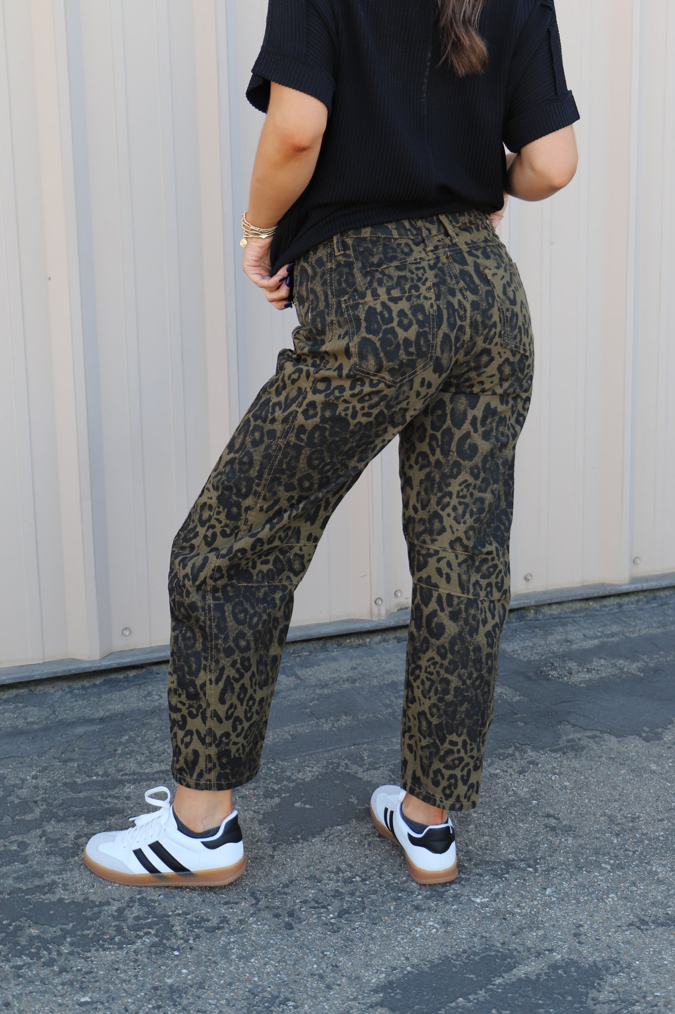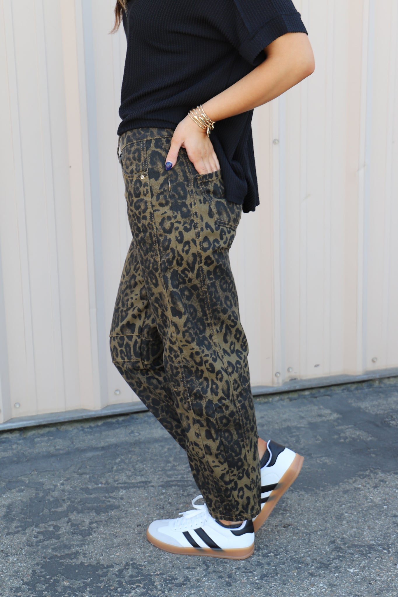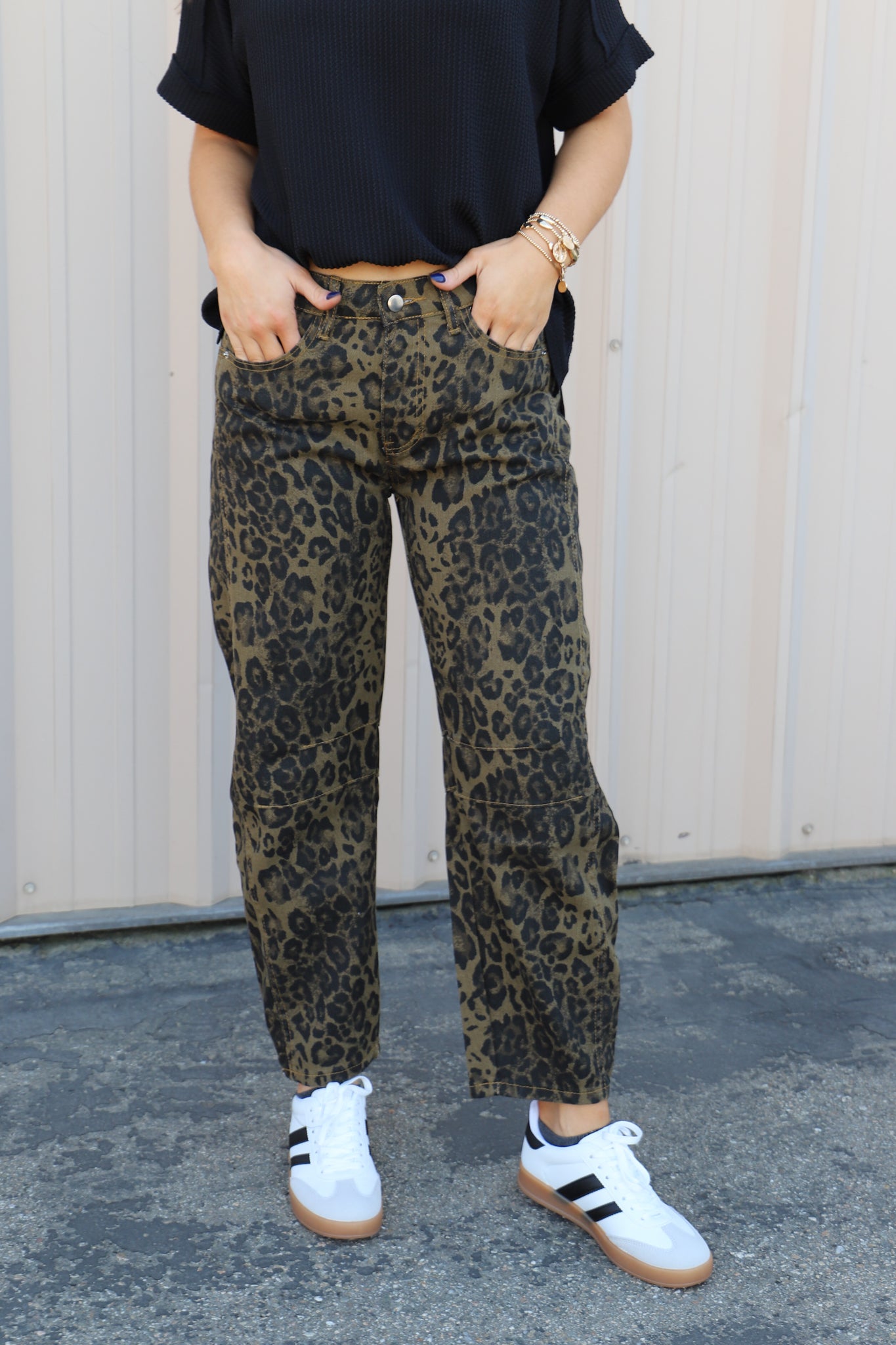 Upgrade your wardrobe with our Lindsey Leopard Barrel Jeans! Made from light weight denim, these trendy jeans feature a unique leopard print design. Express your stylish personality and stand out in the crowd. Don't miss out on these must-have jeans!