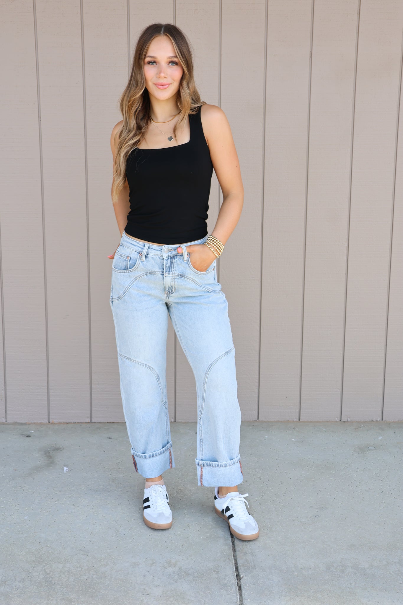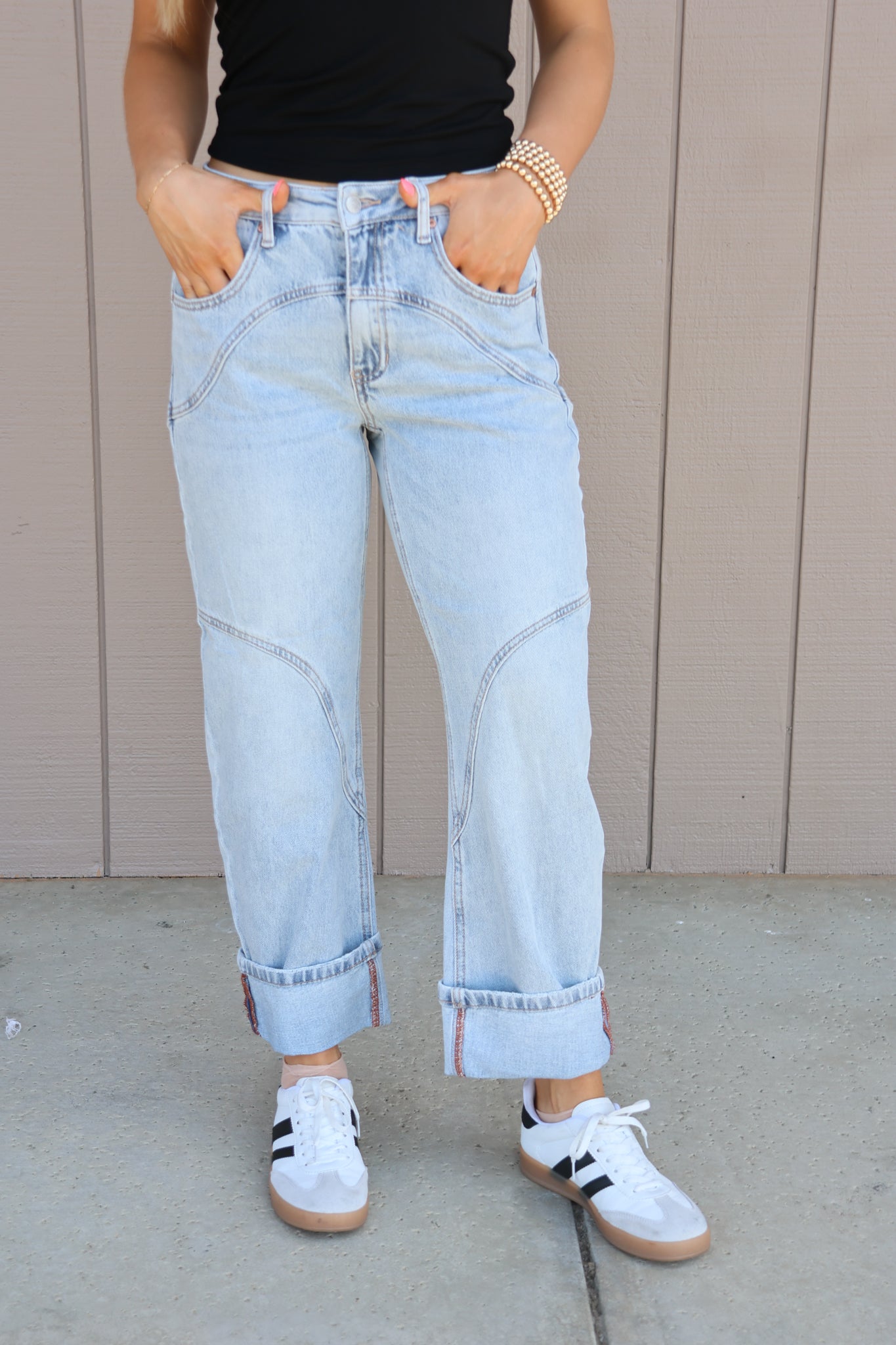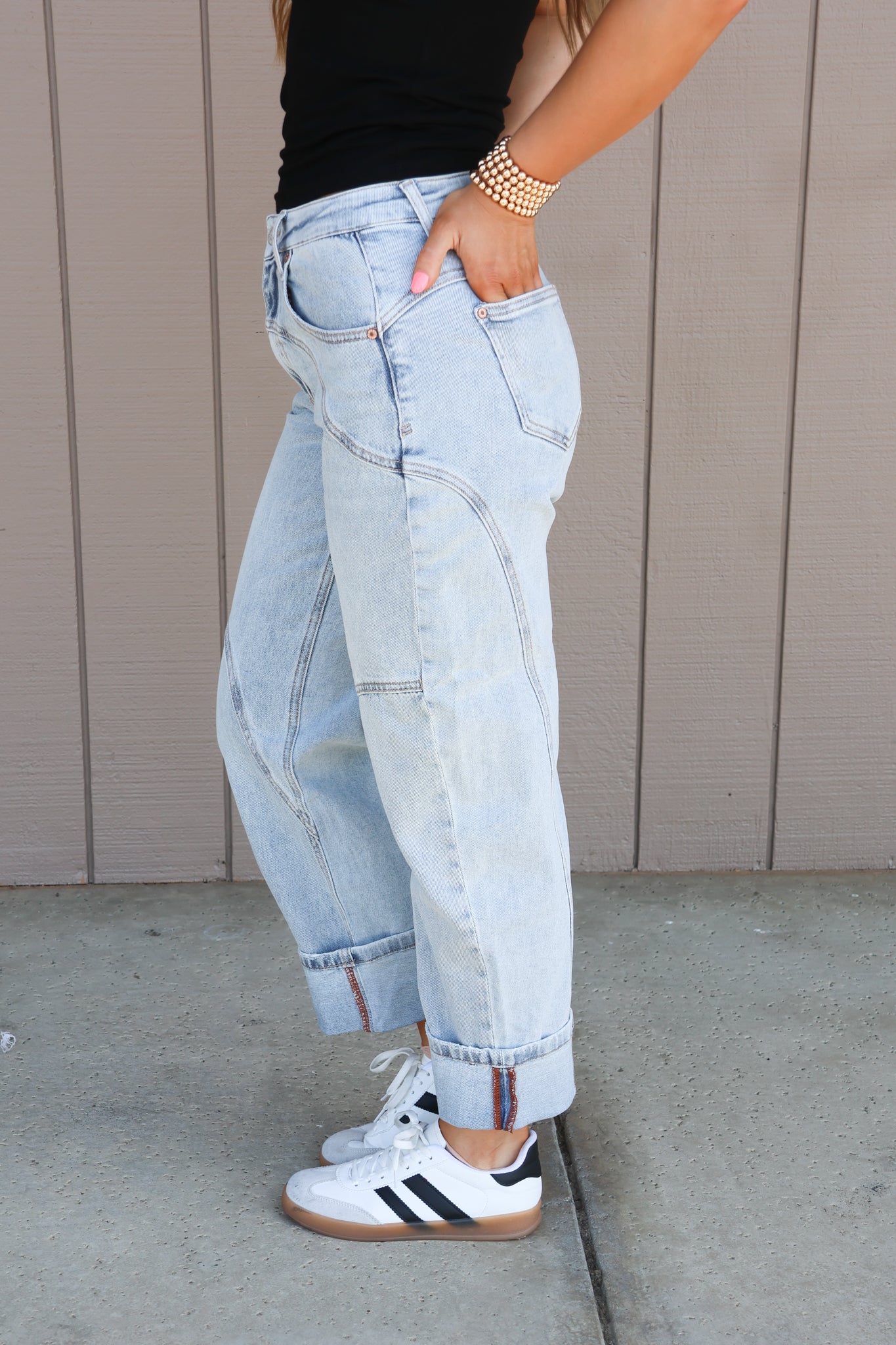 Elevate your casual wardrobe with the Madeline Barrel Jeans. Featuring a flattering high-rise fit and a trendy light wash, these jeans offer both style and comfort. The cuffed barrel leg adds a modern twist, perfect for effortless everyday looks. Designed to complement your silhouette, they pair seamlessly with your favorite tops and shoes for versatile wear.