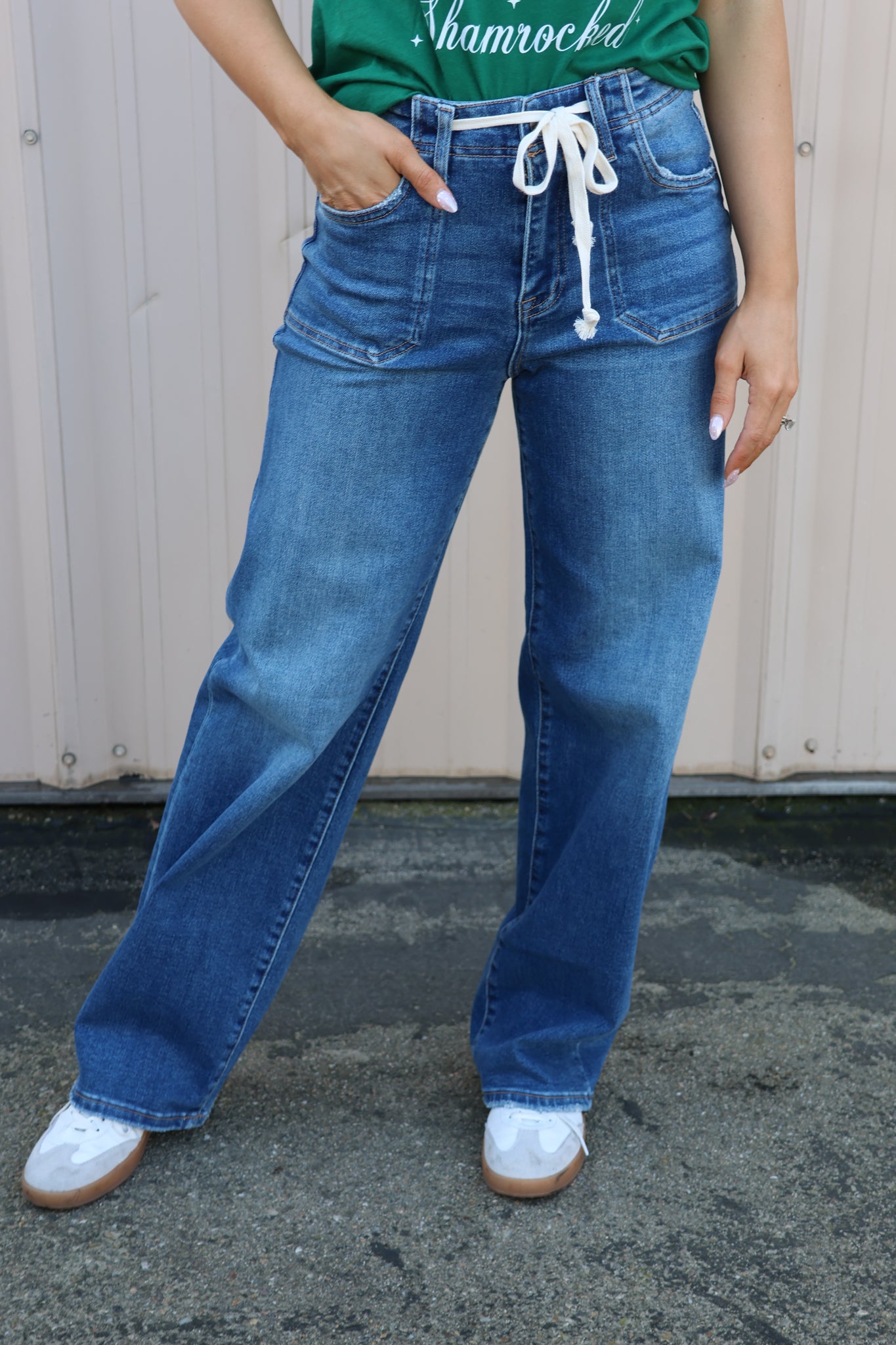 Effortlessly chic meets comfort in the Farrah Jeans. These wide-leg beauties feature a relaxed drawstring waist that lets you adjust the fit to perfection, plus functional front pockets—because who doesn't love a place to stash their essentials? Perfect for everything from casual coffee runs to weekend adventures, the Farrah delivers that coveted laid-back vibe without sacrificing style.