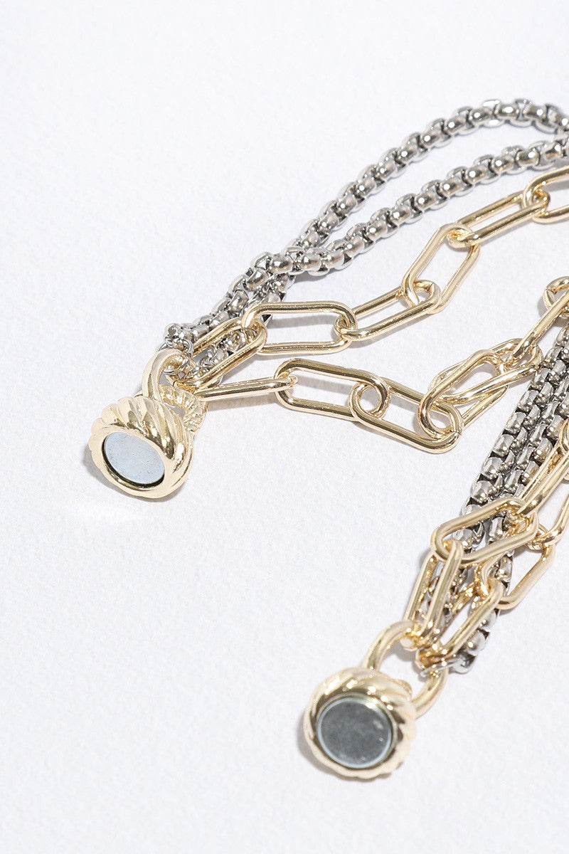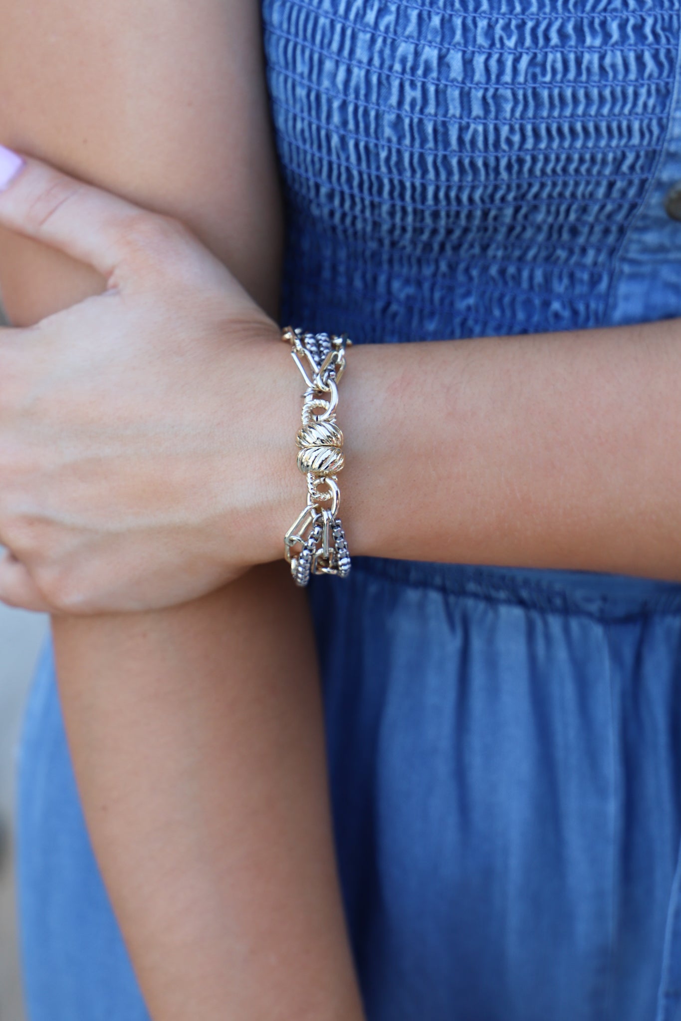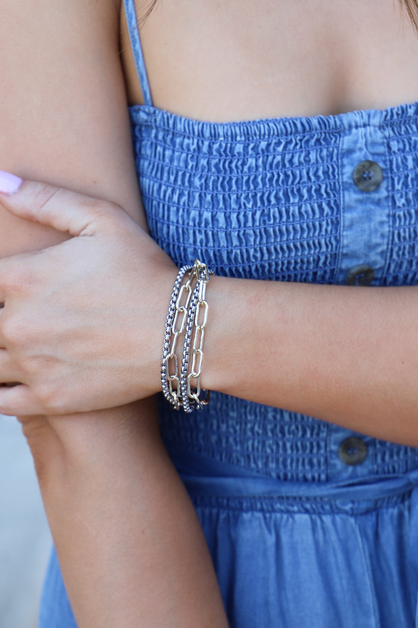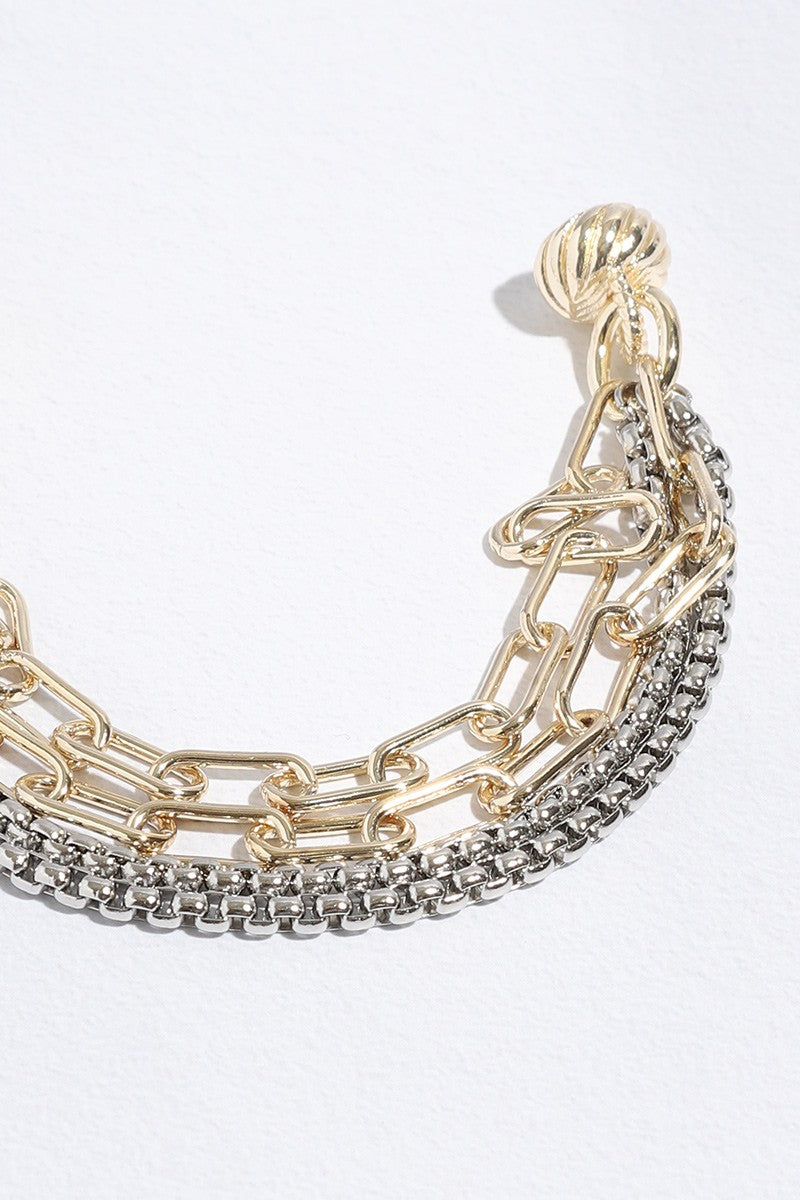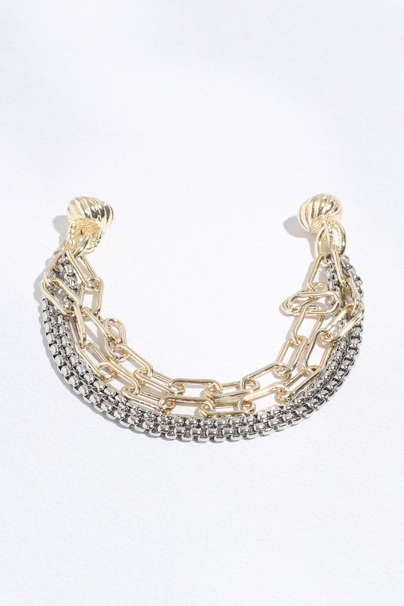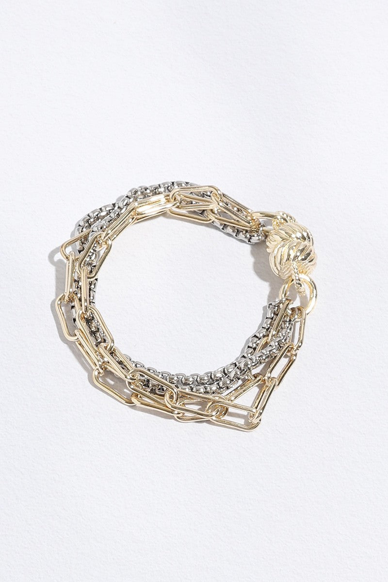 Two Tone Multi Chain Link Bracelet Magnet Closure -Two Tone Multi Chain Link -Magnet Closure -Metal High Polished Link Chain Bracelet -Lead and Nickel Compliant Dimensions: Approx 6.75"