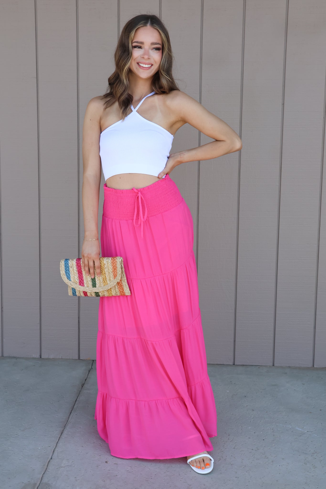 Step into summer with the Mama Mia Maxi Skirt! This breezy, flowy skirt is your go-to for sunny days and warm nights. Its lightweight fabric keeps you cool while the playful design adds a fun twist to any outfit. Perfect for beach strolls, picnics, or dancing under the sun, this skirt brings effortless style and comfort to your summer wardrobe.