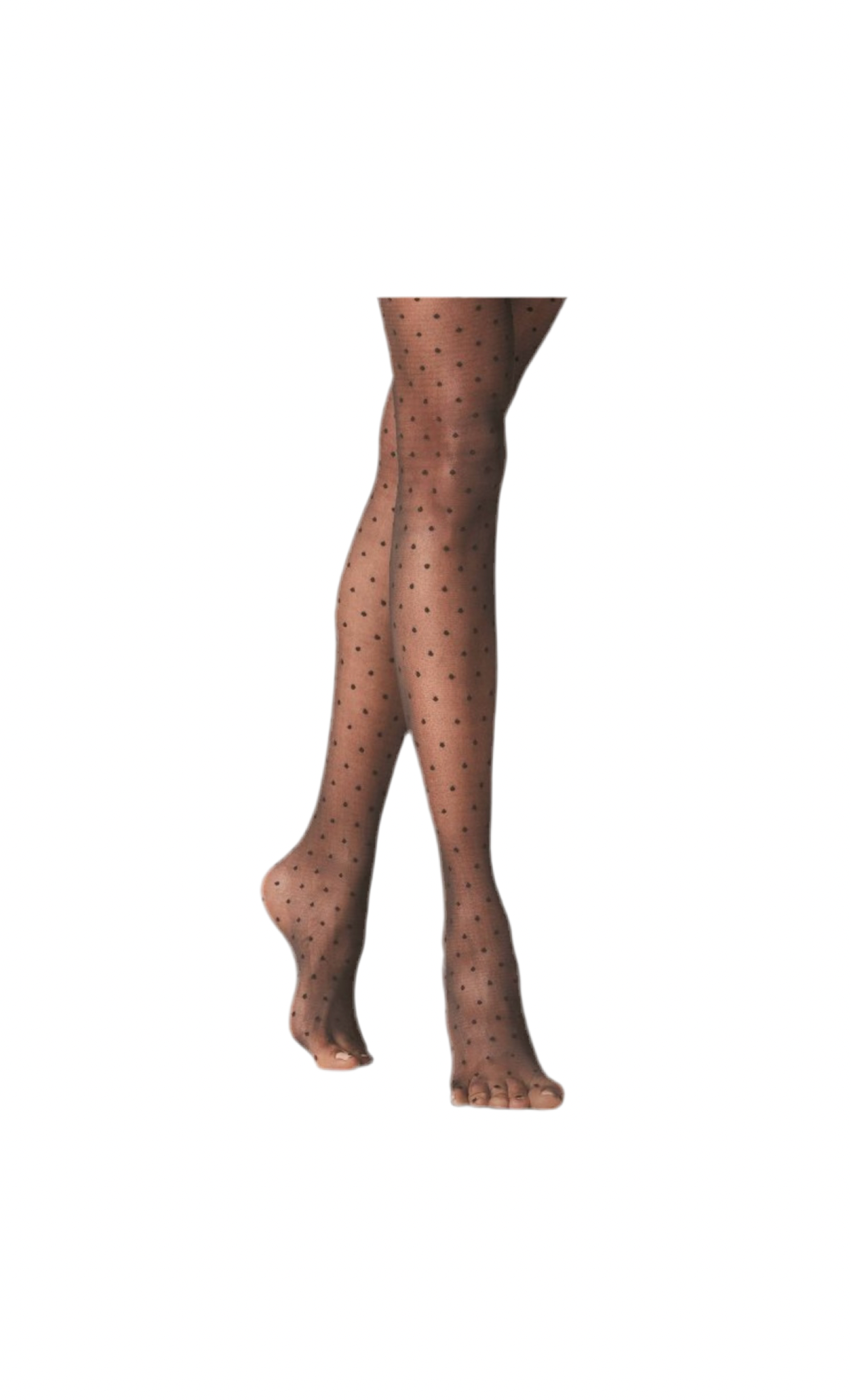 Make a statement in these playful Polka Dot Tights. The sheer textured panty hose features a high waist for a comfortable fit while adding a touch of fun with its black polka dots. One size fits most and is made with breathable, soft material.