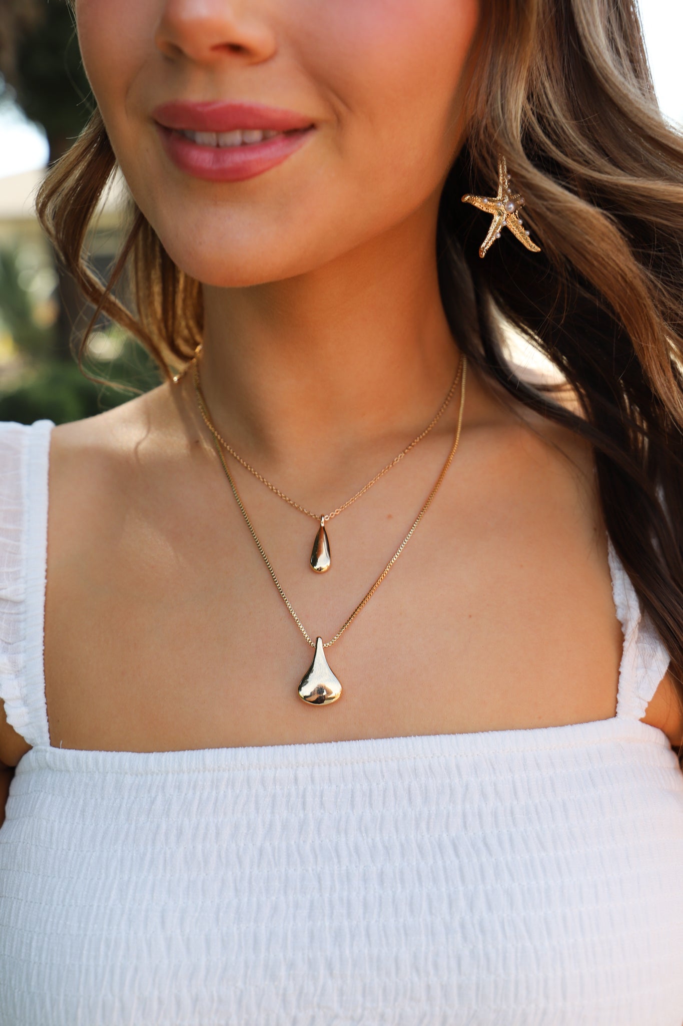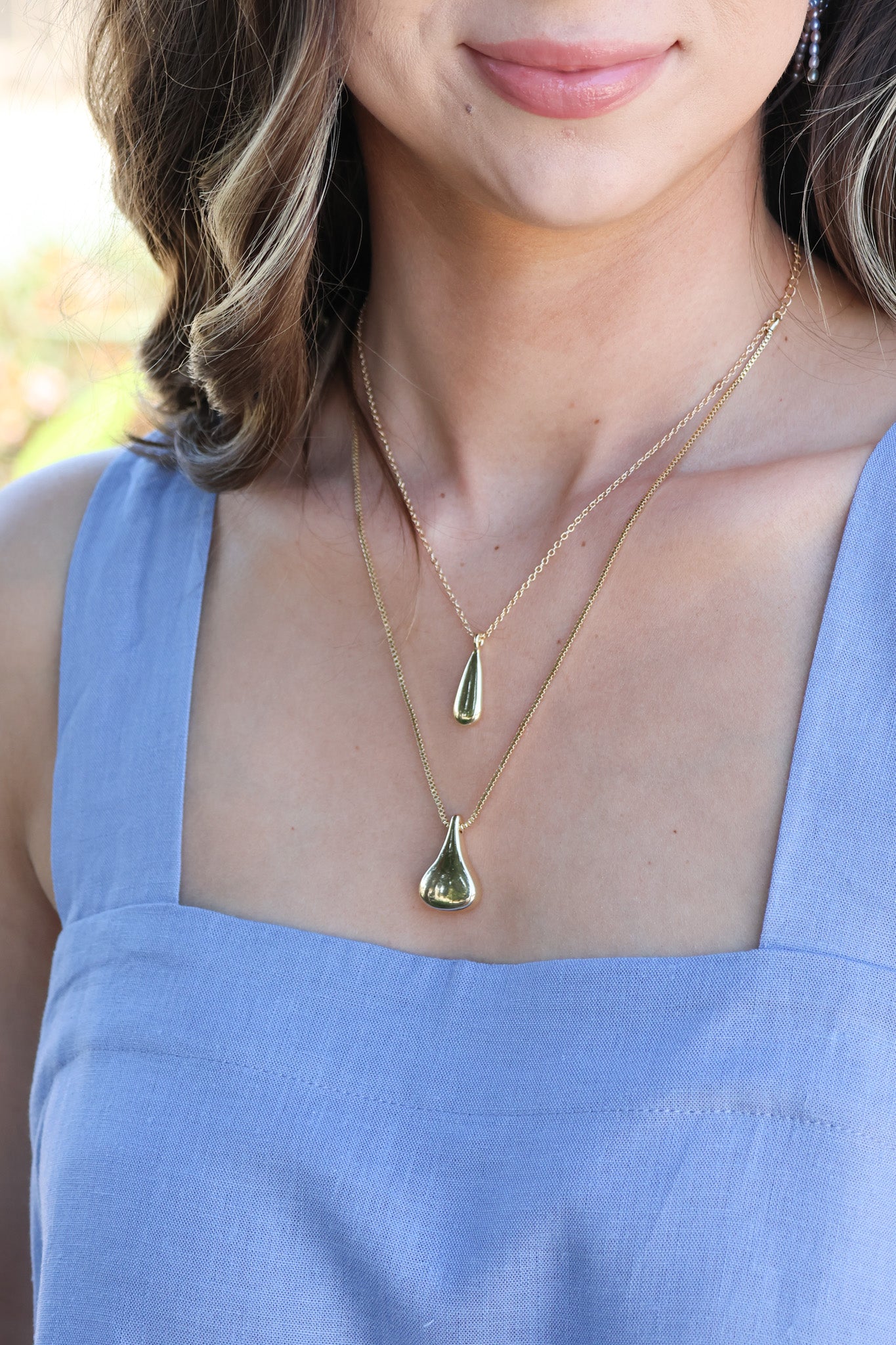 Make a statement with our Timeless Classic Necklace. Choose from gold or silver chains, each adorned with elegant teardrop pendants. This versatile accessory will add a touch of sophistication to any outfit. Unleash your inner fashionista!