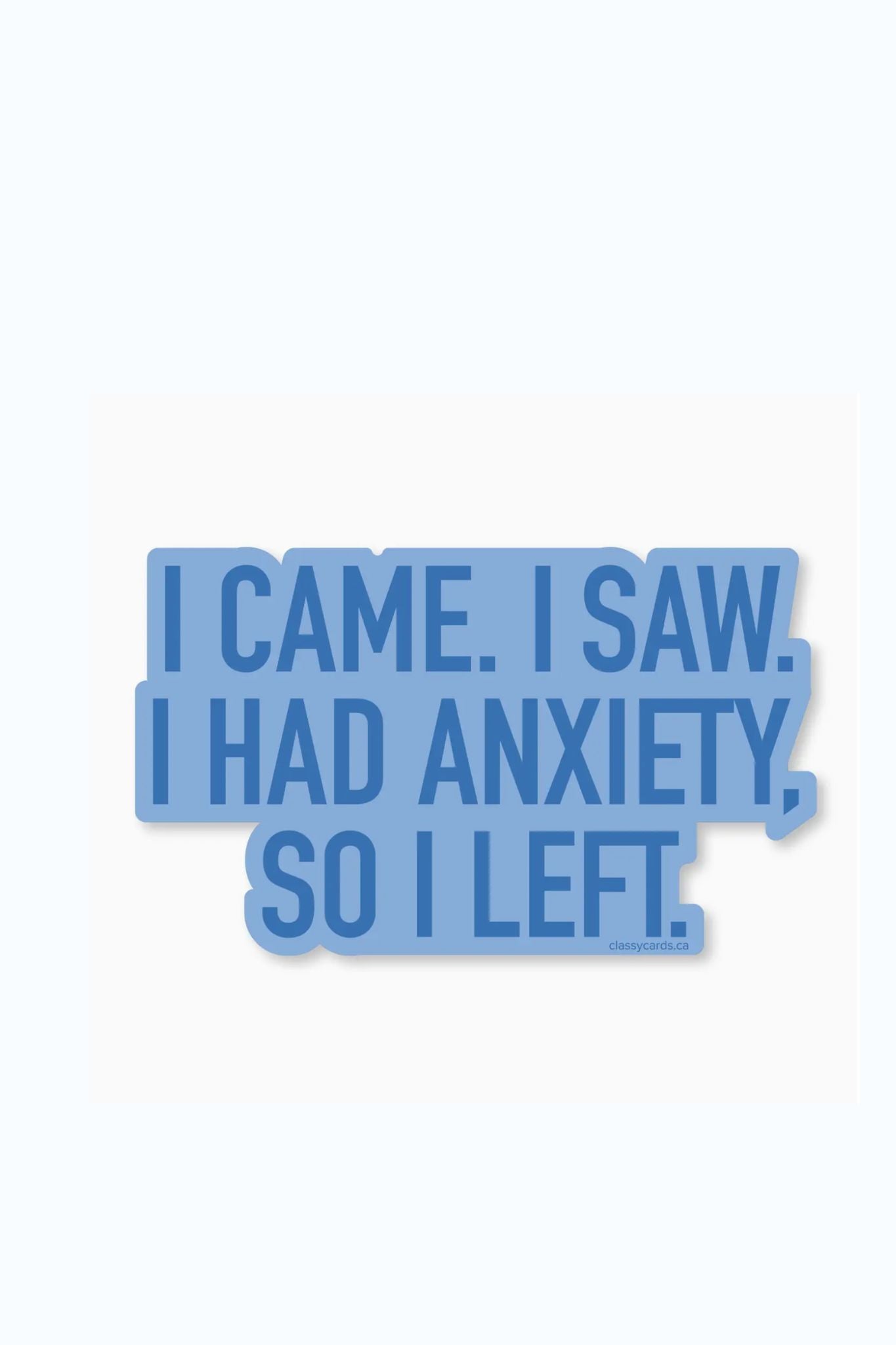 Brighten up your day with our Anxiety Sticker! Featuring a playful message, this sticker is perfect for those who experience anxiety. Carry it with you and let it remind you that you are not alone. Put it on your phone, notebook, or anywhere you want a little bit of humor (and relief) during anxious moments.