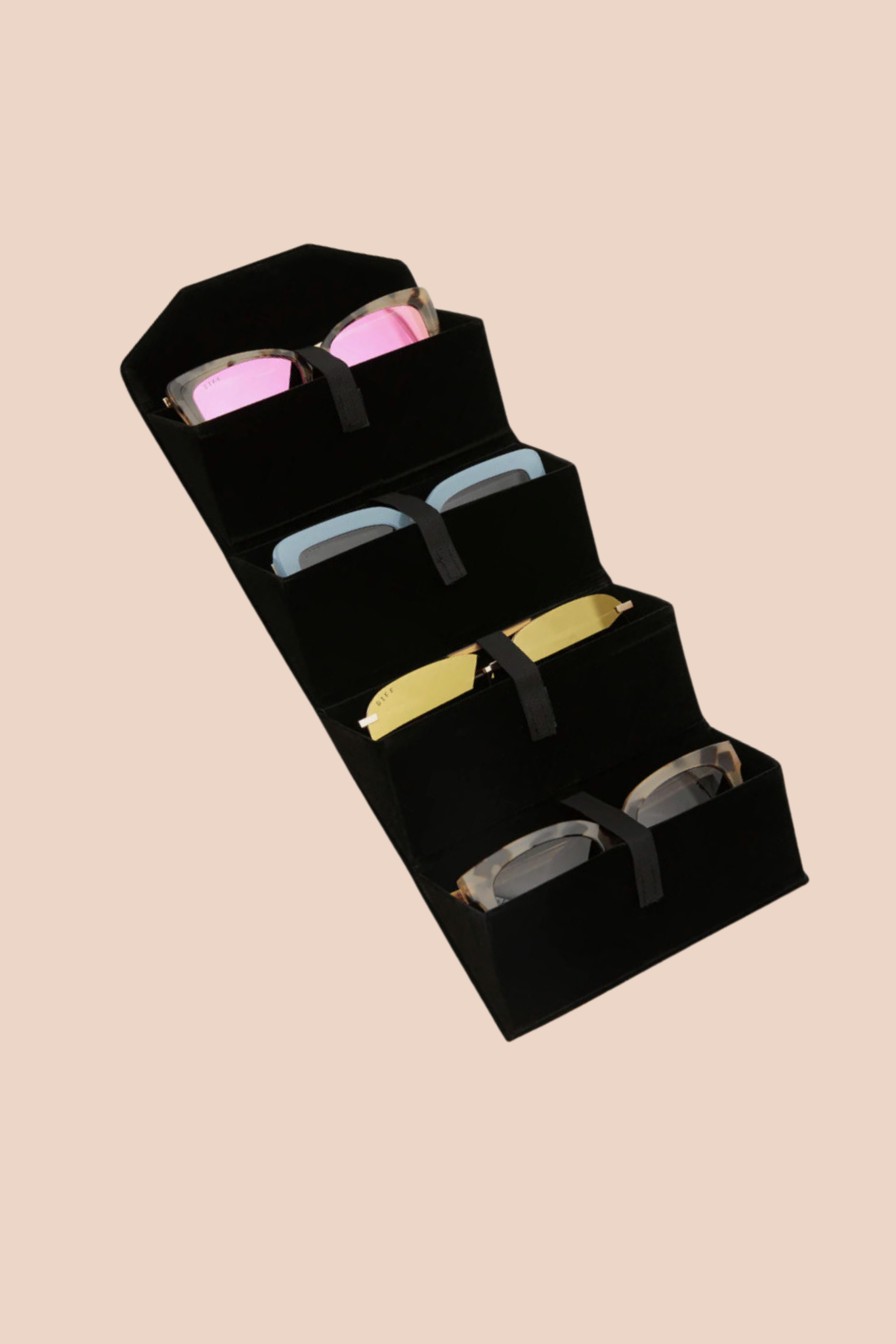 Featuring a velvet finish, our 4-piece rollup case is the perfect solution for keeping your frames organized. This hard case folds completely flat when empty, making it the perfect travel accessory.