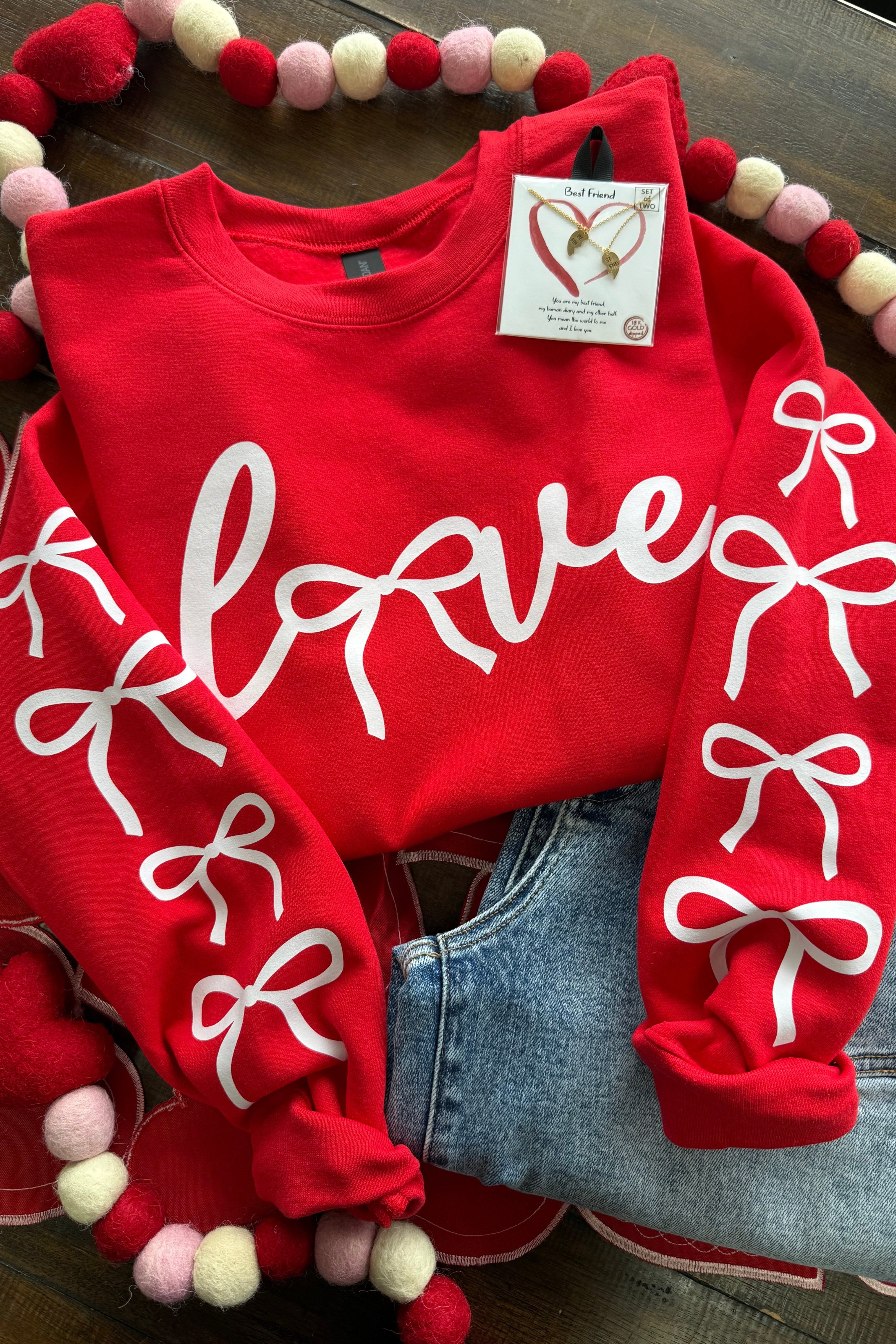 Love & Bow Sleeve Crewneck - ShopSpoiled Love & Bow Sleeve Crewneck - ShopSpoiled