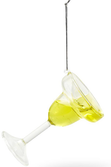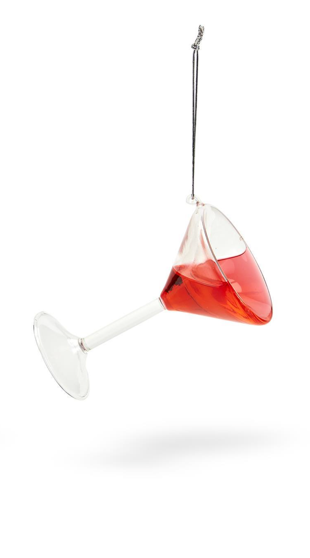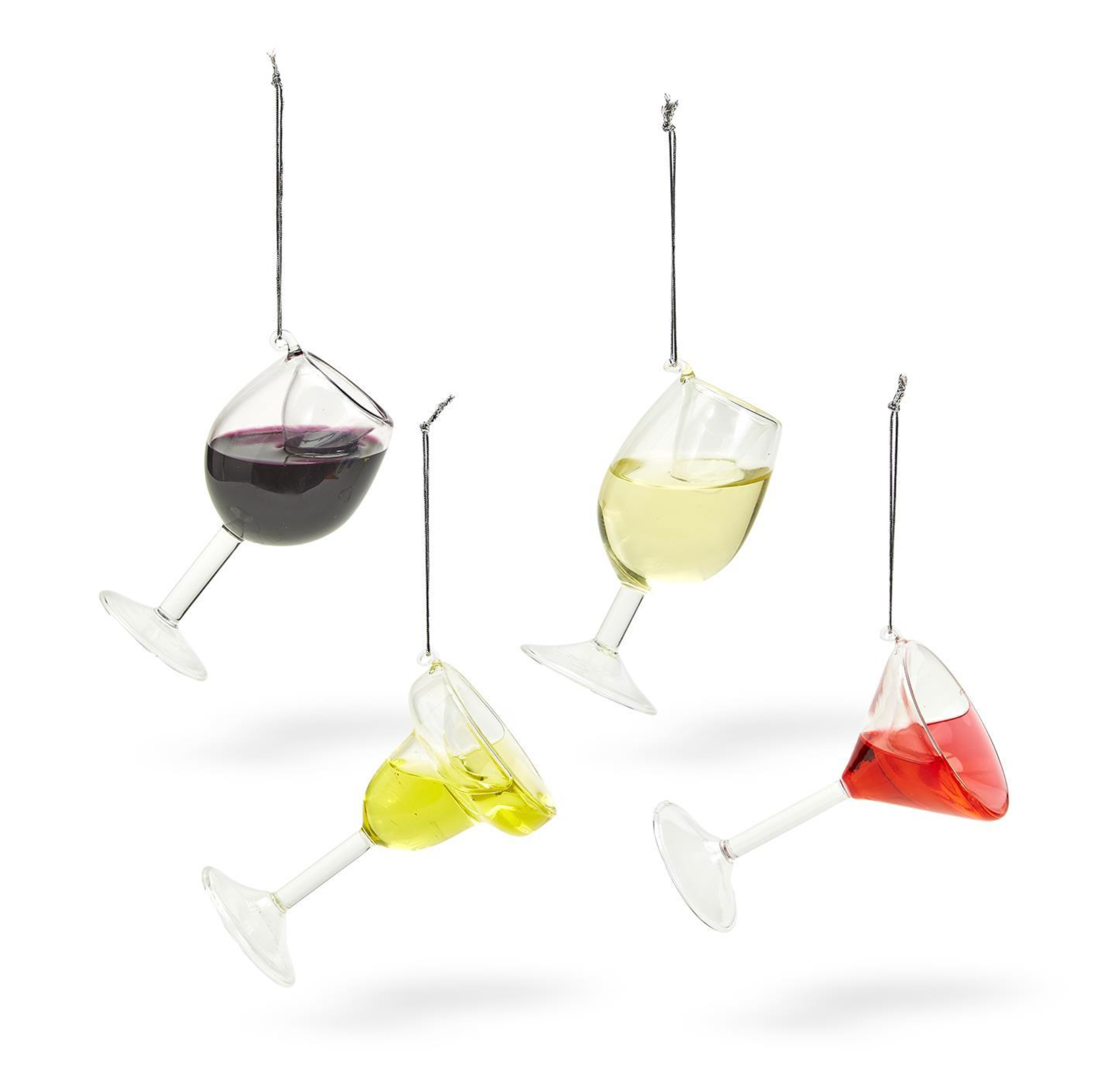Happy Hour Hand-Crafted Ornament Assorted 4 Designs: White Wine, Red Wine, Martini, Margarita - Glass