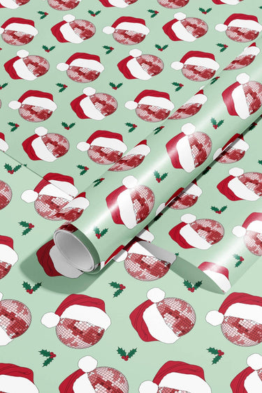 Santa Hat Disco Ball Christmas Gift Wrap Wrapping Paper