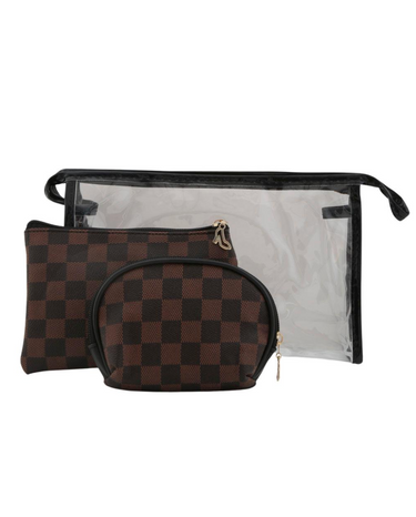 Get organized with our 3-piece makeup bag set! These bags are perfect for storing all of your beauty essentials. The largest bag is perfect for home use, while the medium and small bags are ideal for travel. Keep your makeup safe and secure with our stylish and practical set.