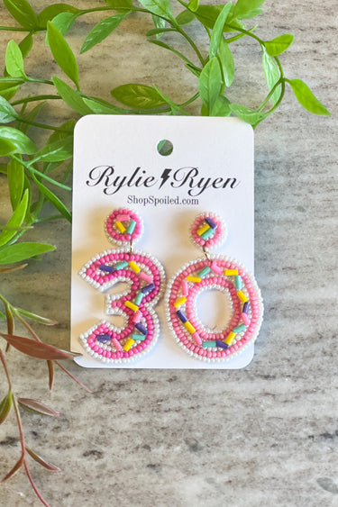 Crafted with festive flair, these cake-inspired beaded earrings are the perfect accessory for a 30th birthday celebration. Sparkly and fun, they add a touch of whimsy to any outfit. (Who says you can't have your cake and wear it too?!) Enjoy your special day with these playful earrings.