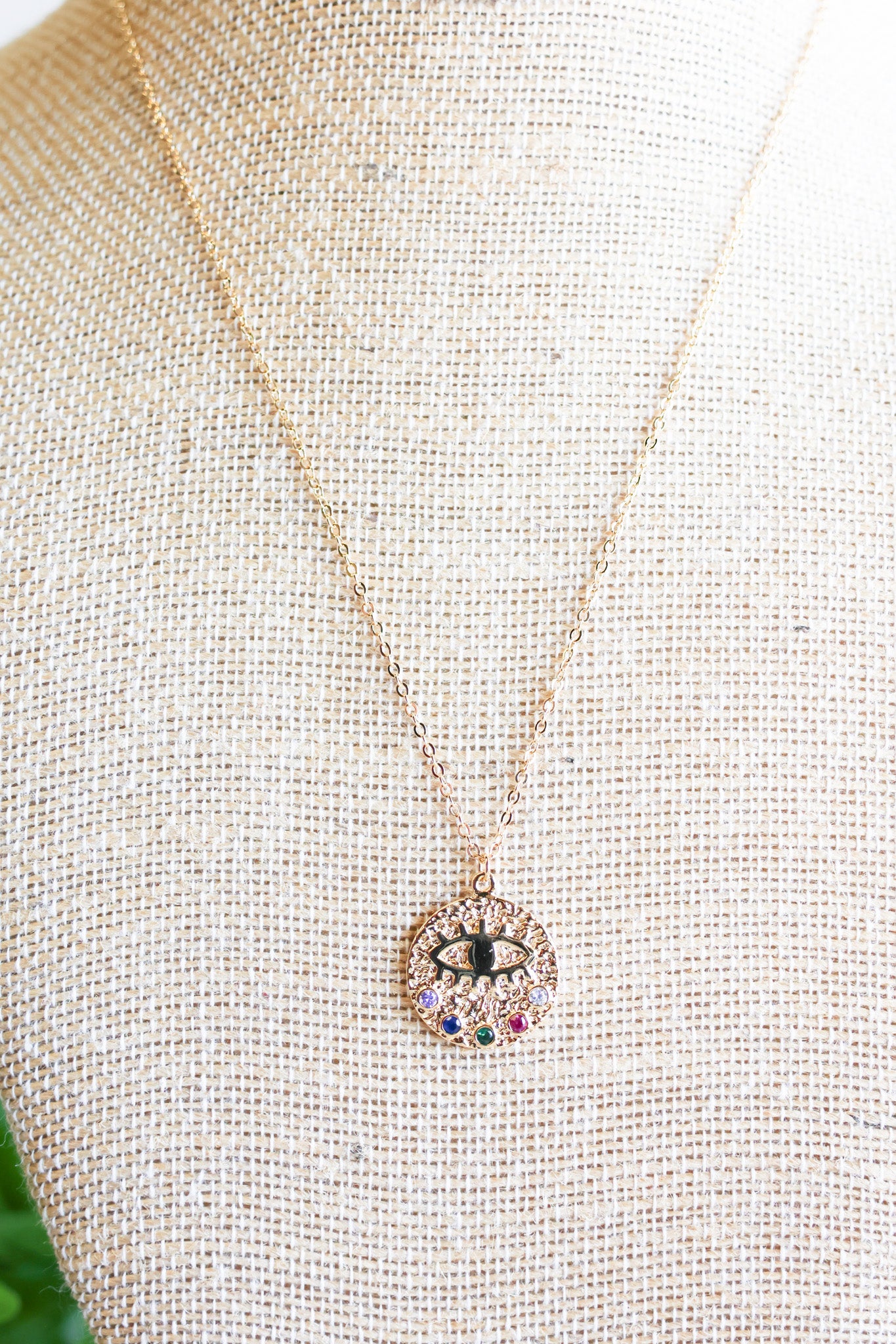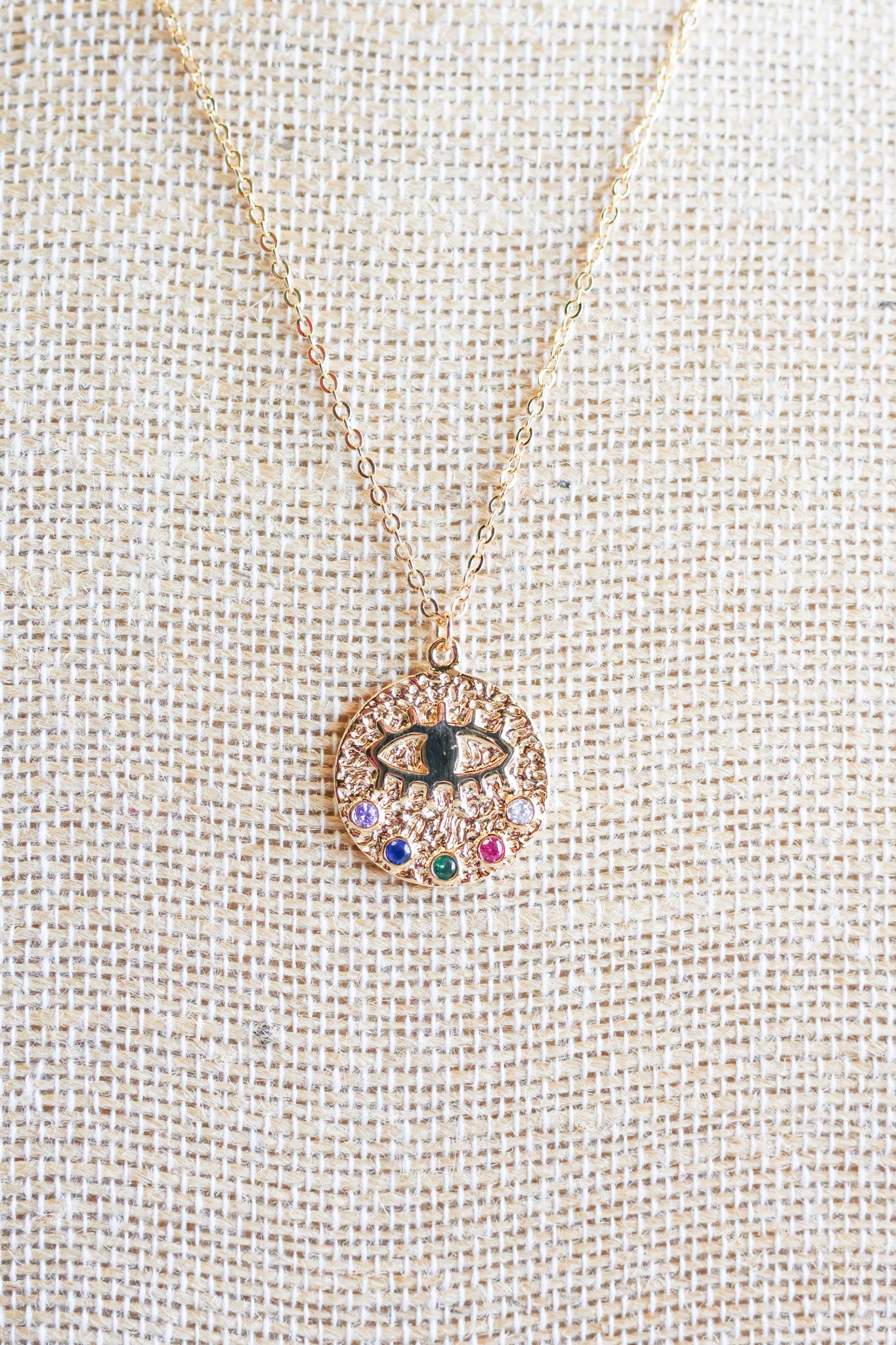 Channel good vibes and ward off bad luck with our Always Watching Necklace. This gold evil eye necklace (lucky charm) is sure to turn heads and bring positive energies your way. Keep an eye out for compliments while enjoying the benefits of this unique piece of jewelry!
