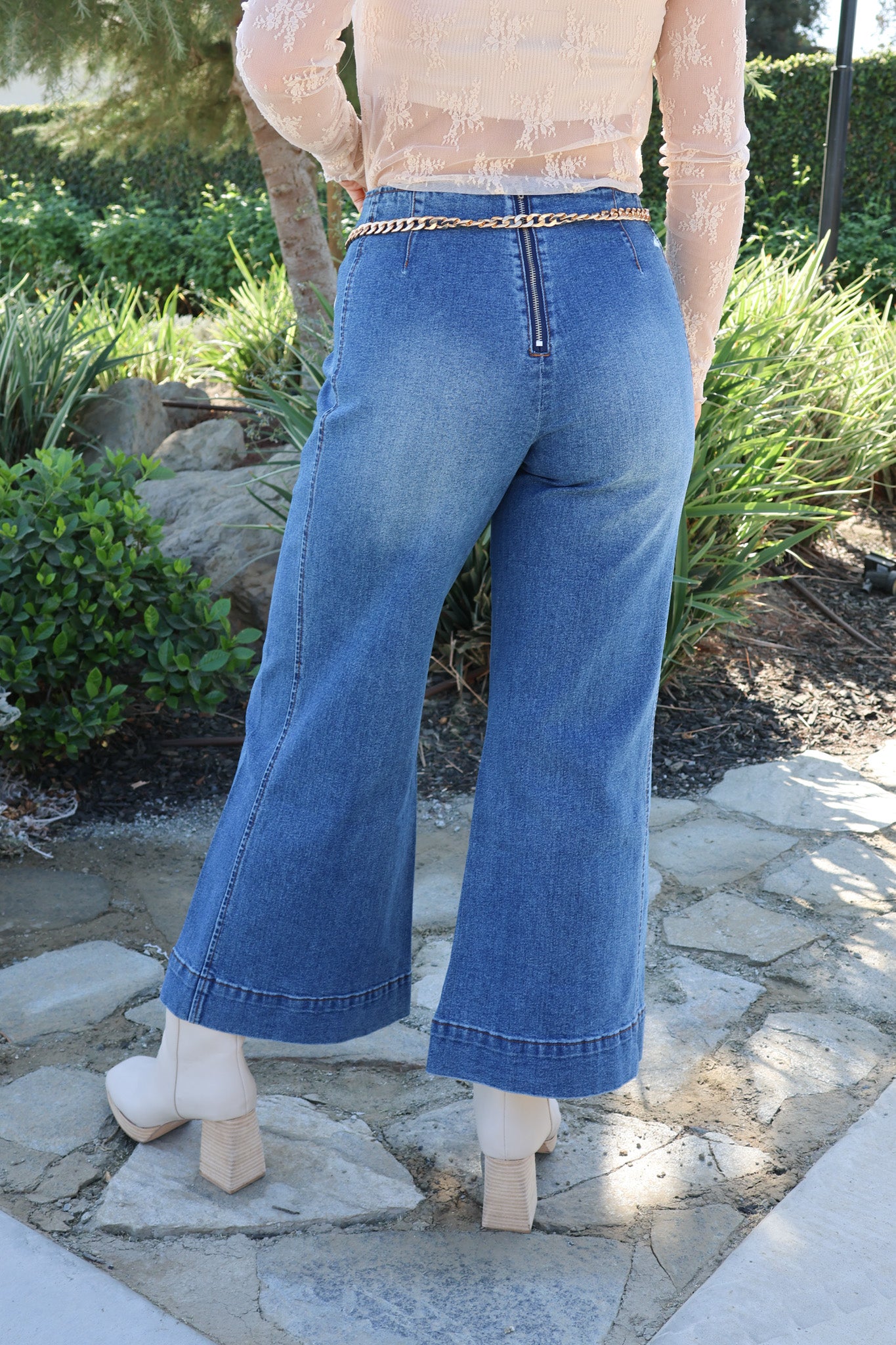 Mid Rise crop wide leg denim jeans with back closure zipper