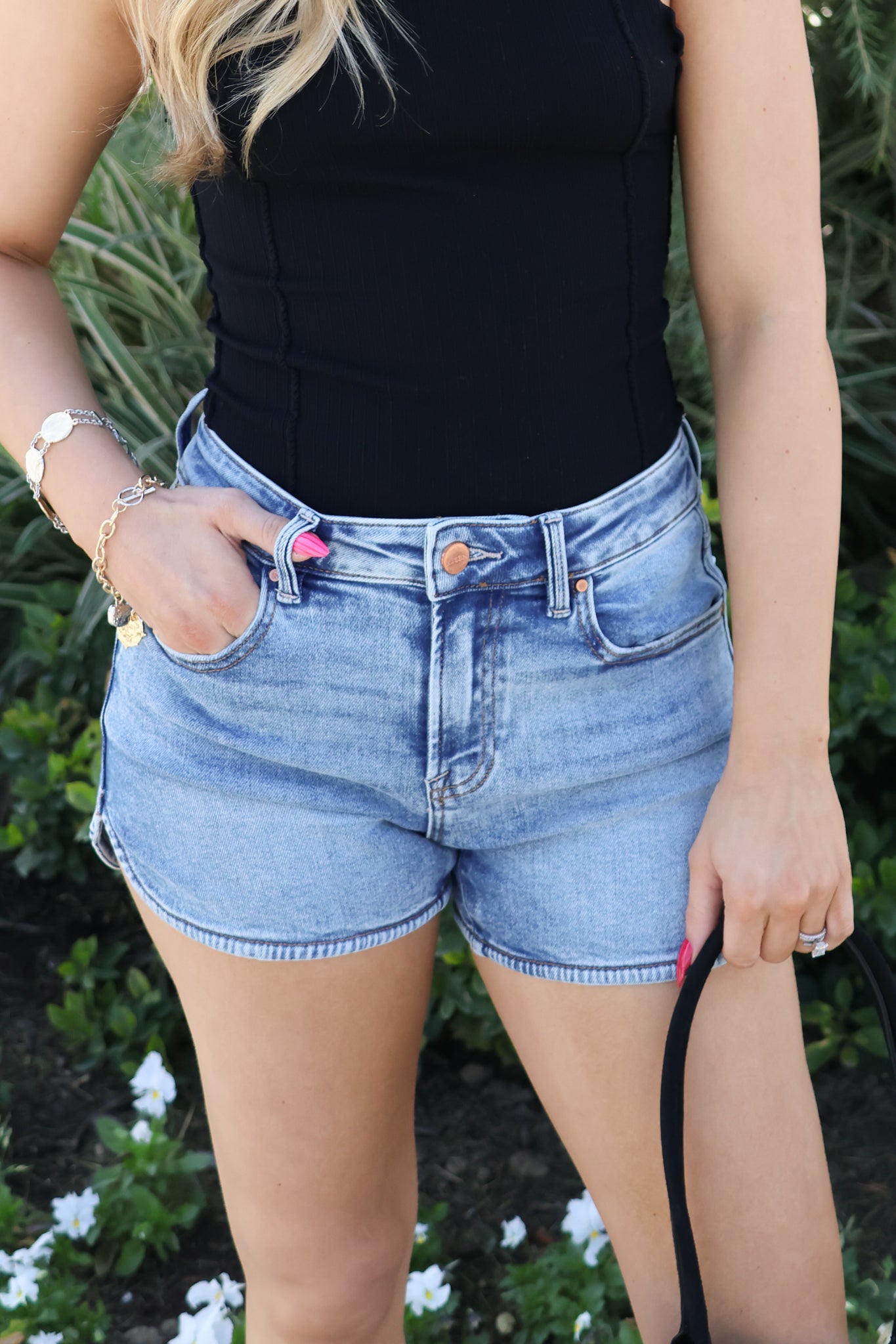 The structured high waist creates a smoothing silhouette, while the classic 5-pocket design keeps them timeless and easy to style. Pair them with a fitted tank, graphic tee, or breezy blouse for an easy summer outfit that works from errands to vacation.