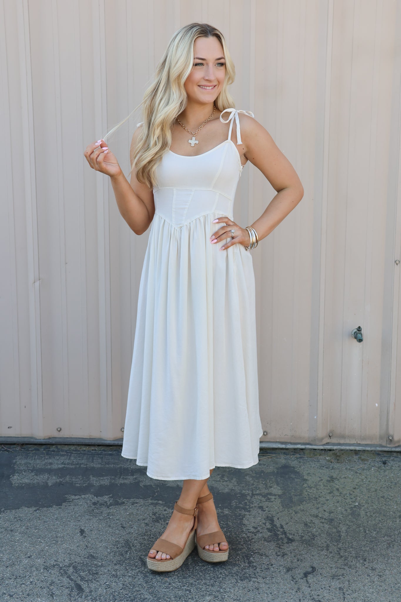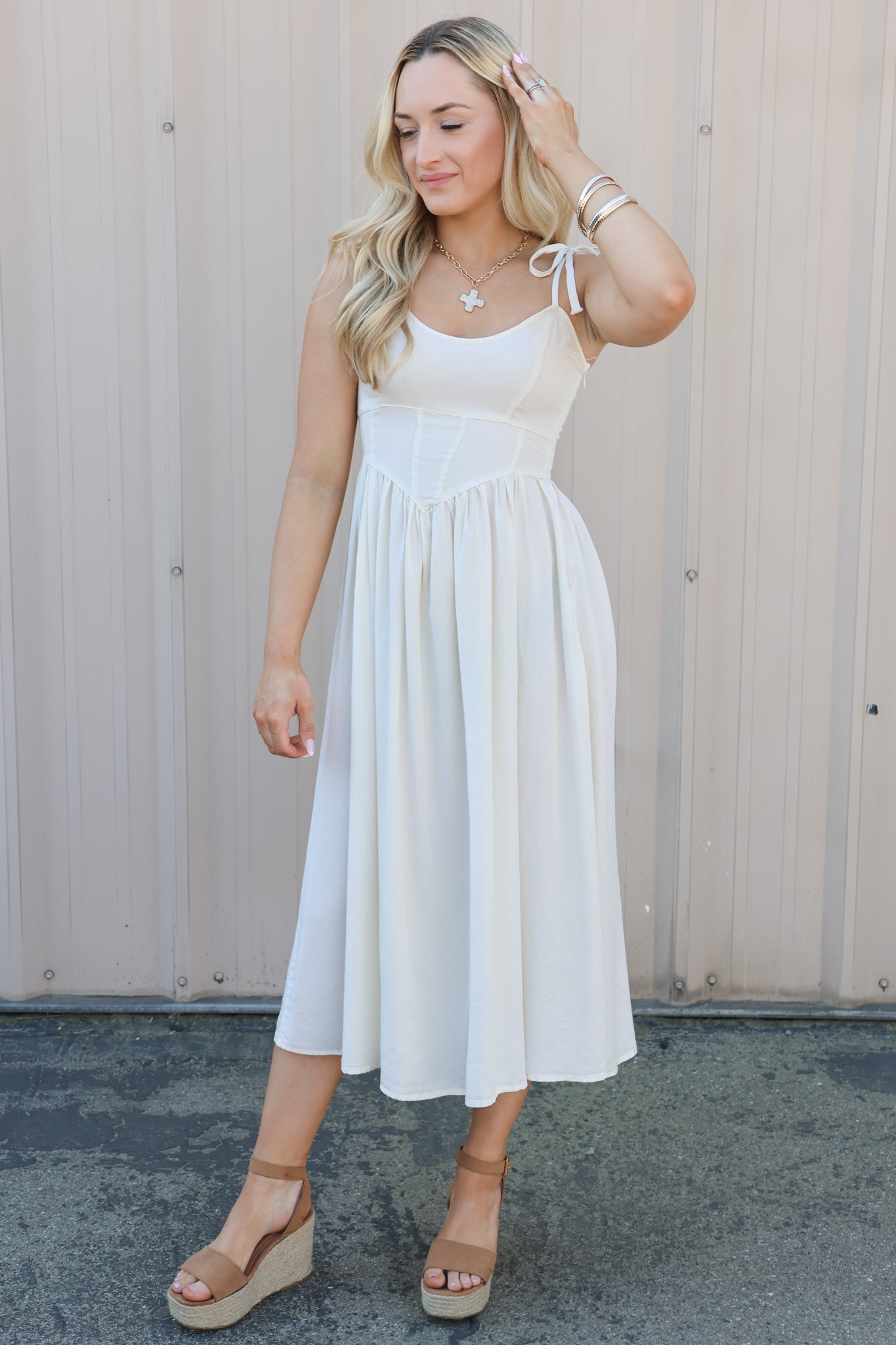 Pair with wedges or sandals for an easy daytime look, or dress it up with heels and layered jewelry for weddings, graduation, or special events.