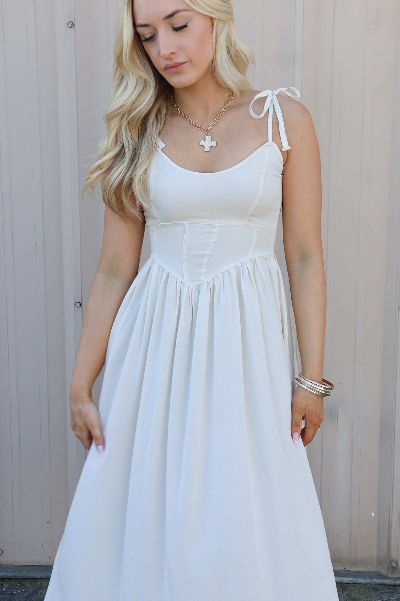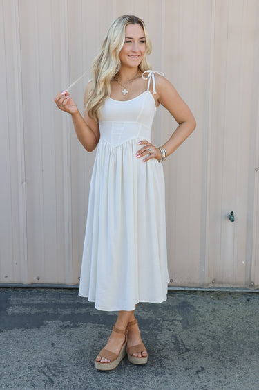 Featuring delicate adjustable tie straps and a lightweight, breathable fabric, it’s the perfect piece for warm weather styling. Whether you're heading to brunch, a spring event, vacation, or a casual day out, this dress can easily be dressed up or down.