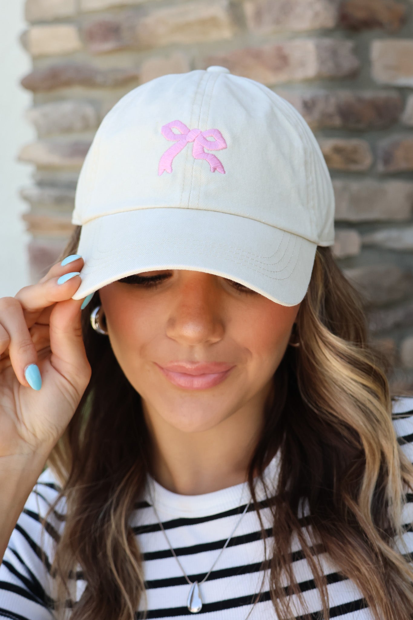 Get playful with our Embroidered Bow Hat! This baseball cap style hat features a fun embroidered bow that adds a quirky touch to any outfit. Perfect for those who don't take themselves too seriously.