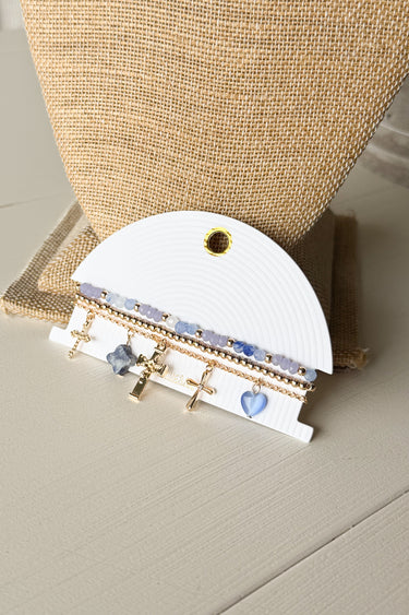 Delicate, meaningful, and effortlessly stylish. The Faith & Heart Bracelet Set features a mix of dainty gold chains and soft beaded strands, finished with charming cross and heart details. Perfect for stacking or wearing together, this set adds a sweet touch of faith and femininity to any look.