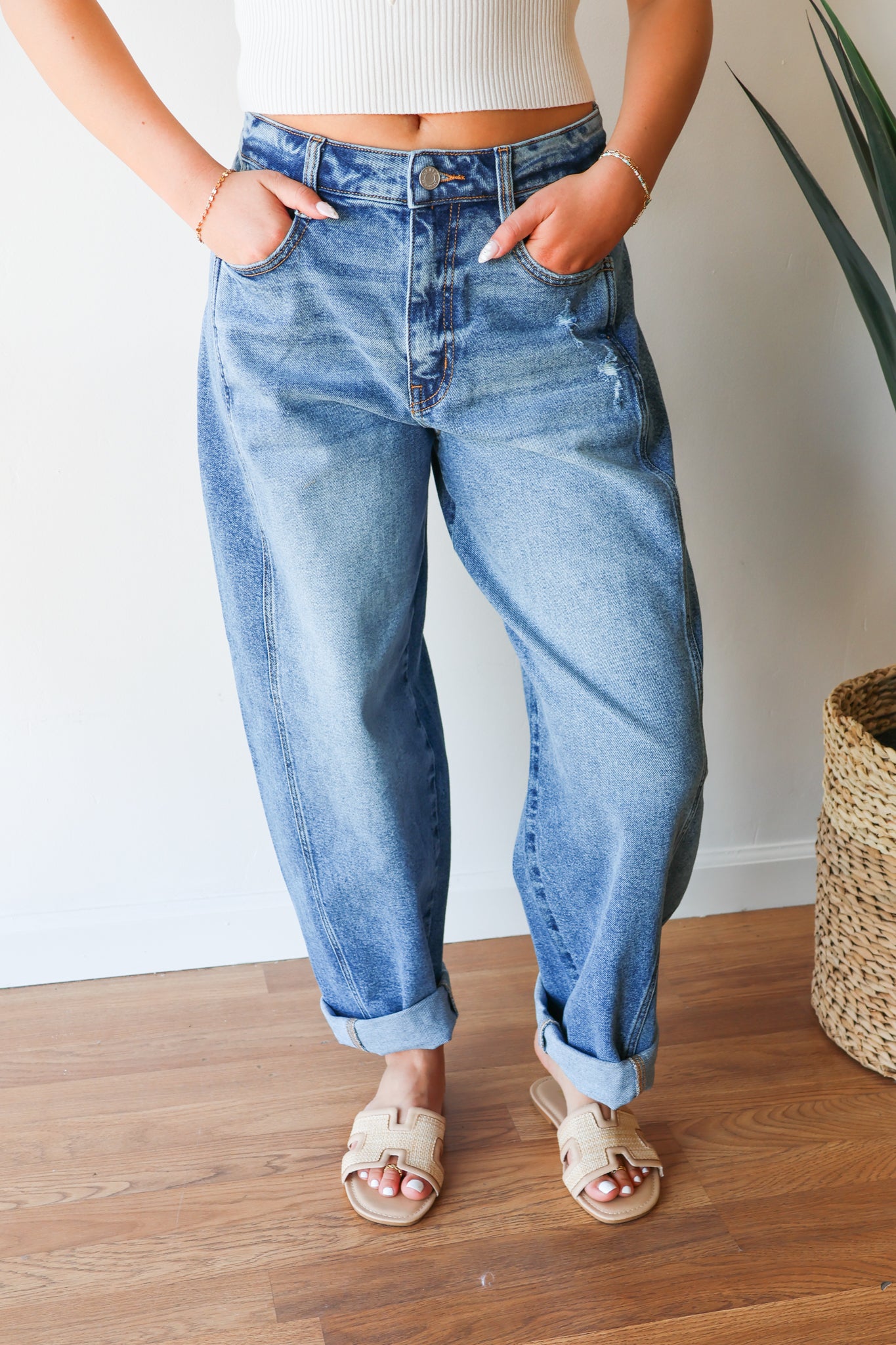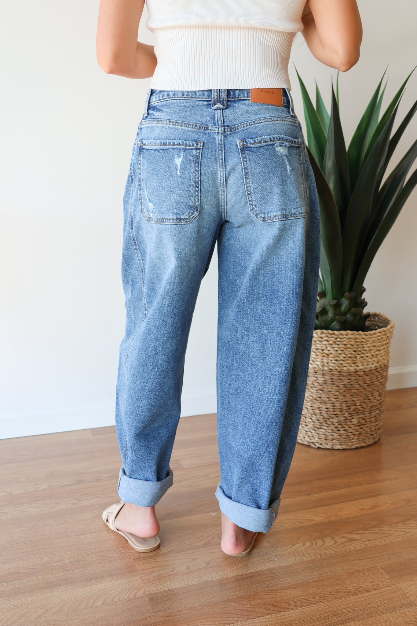 Mid Waist Barrel Leg with Rolled Cuff