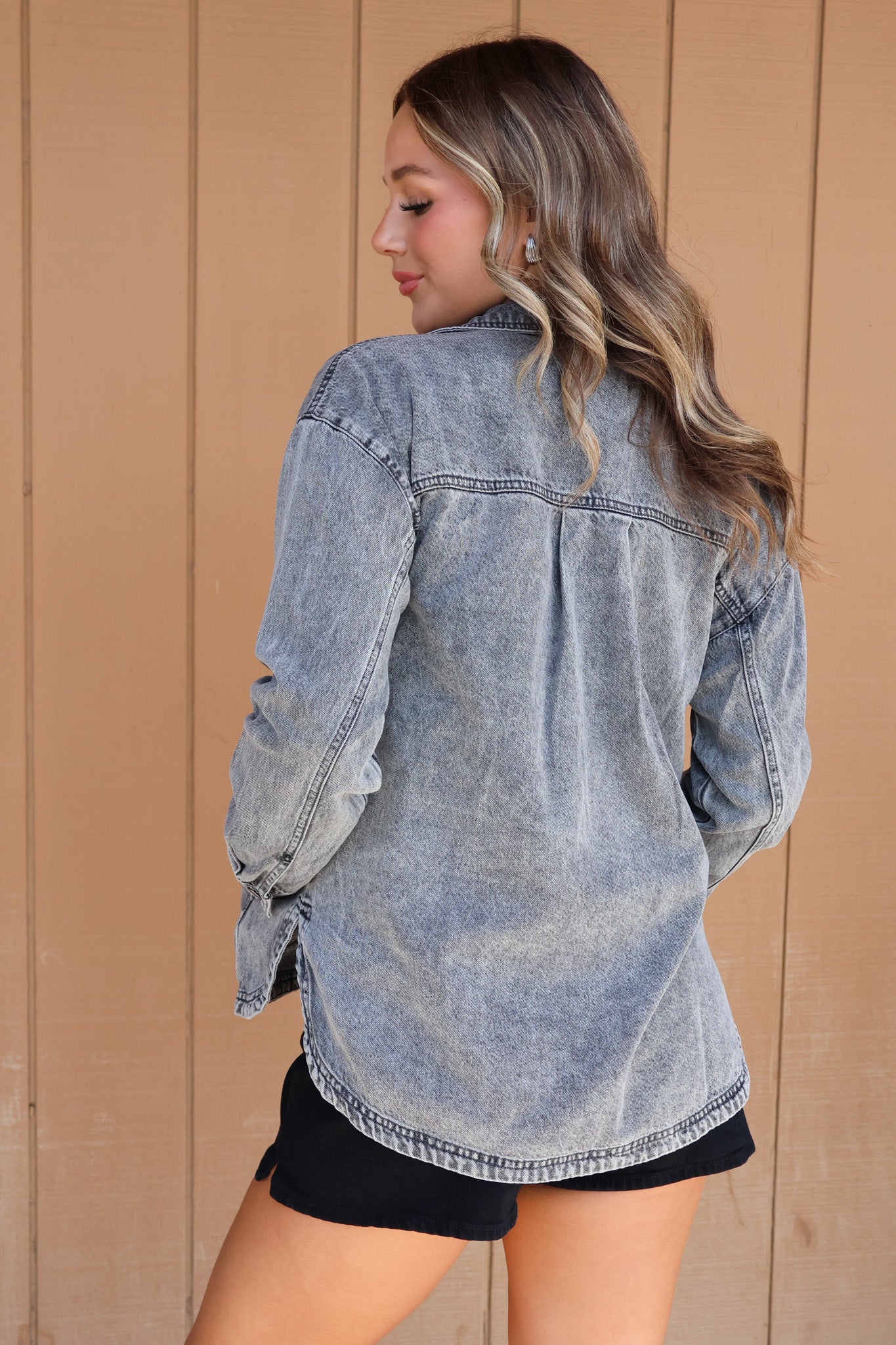 Your go-to layering piece for every season. This lightweight denim jacket features a relaxed, oversized fit that’s effortless, flattering, and right on trend. Designed with classic button-front styling, chest pockets, and a soft, broken-in feel, it’s perfect for throwing on over tees, tanks, dresses, or activewear. Easy to dress up or down, this jacket adds that casual-cool vibe to any outfit.