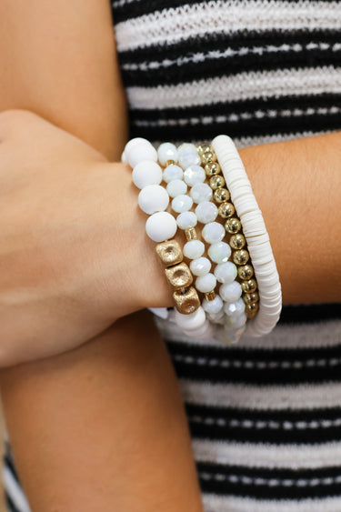 Get ready to hit the beach in style with our White Sand Beach Bracelet Set! This set includes a variety of white and gold beaded bracelets that will add a touch of elegance and fun to any outfit. Perfect for a day at the beach, these bracelets will have you feeling like the ultimate beach babe!